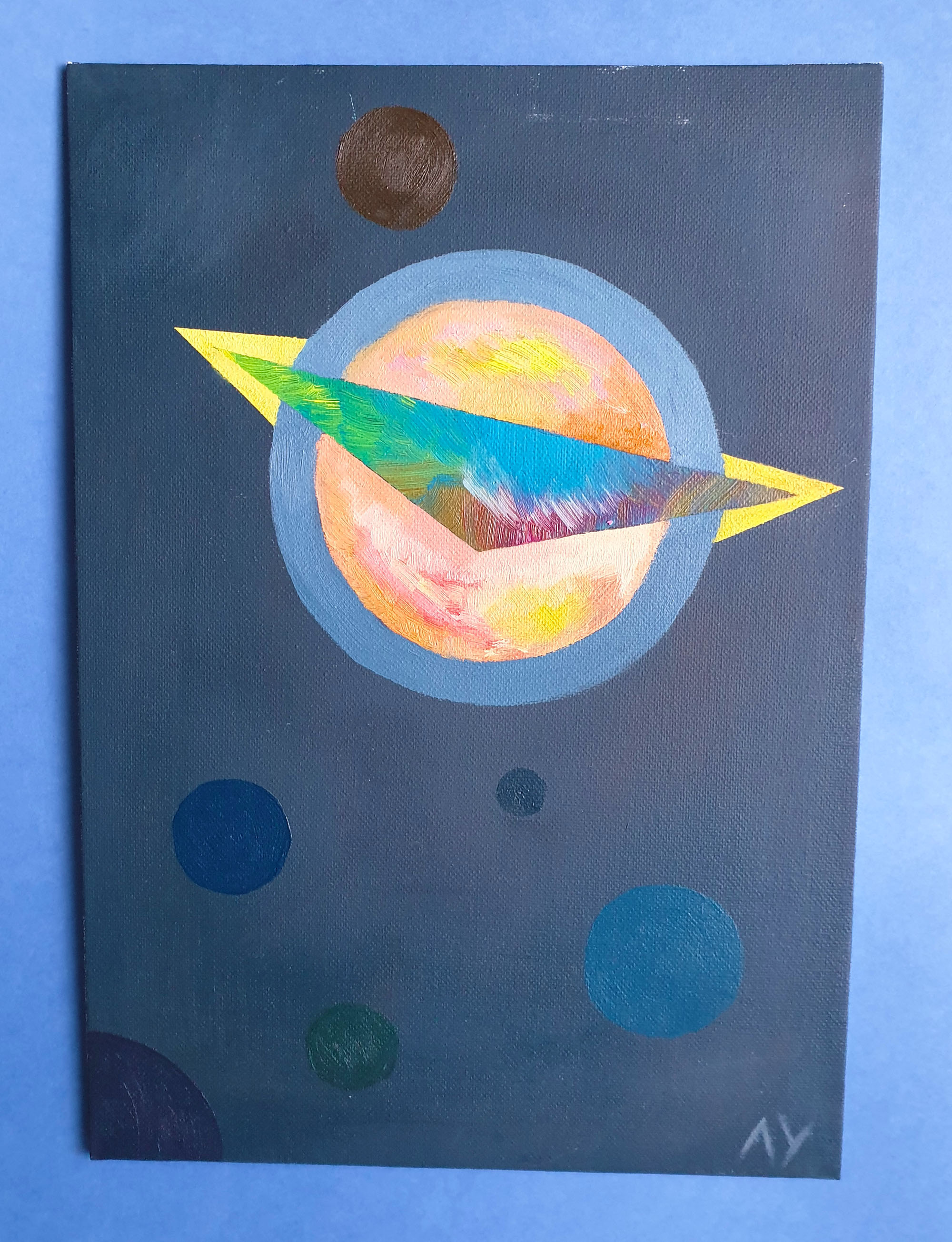Абстрактное изображение вселенной на холсте.