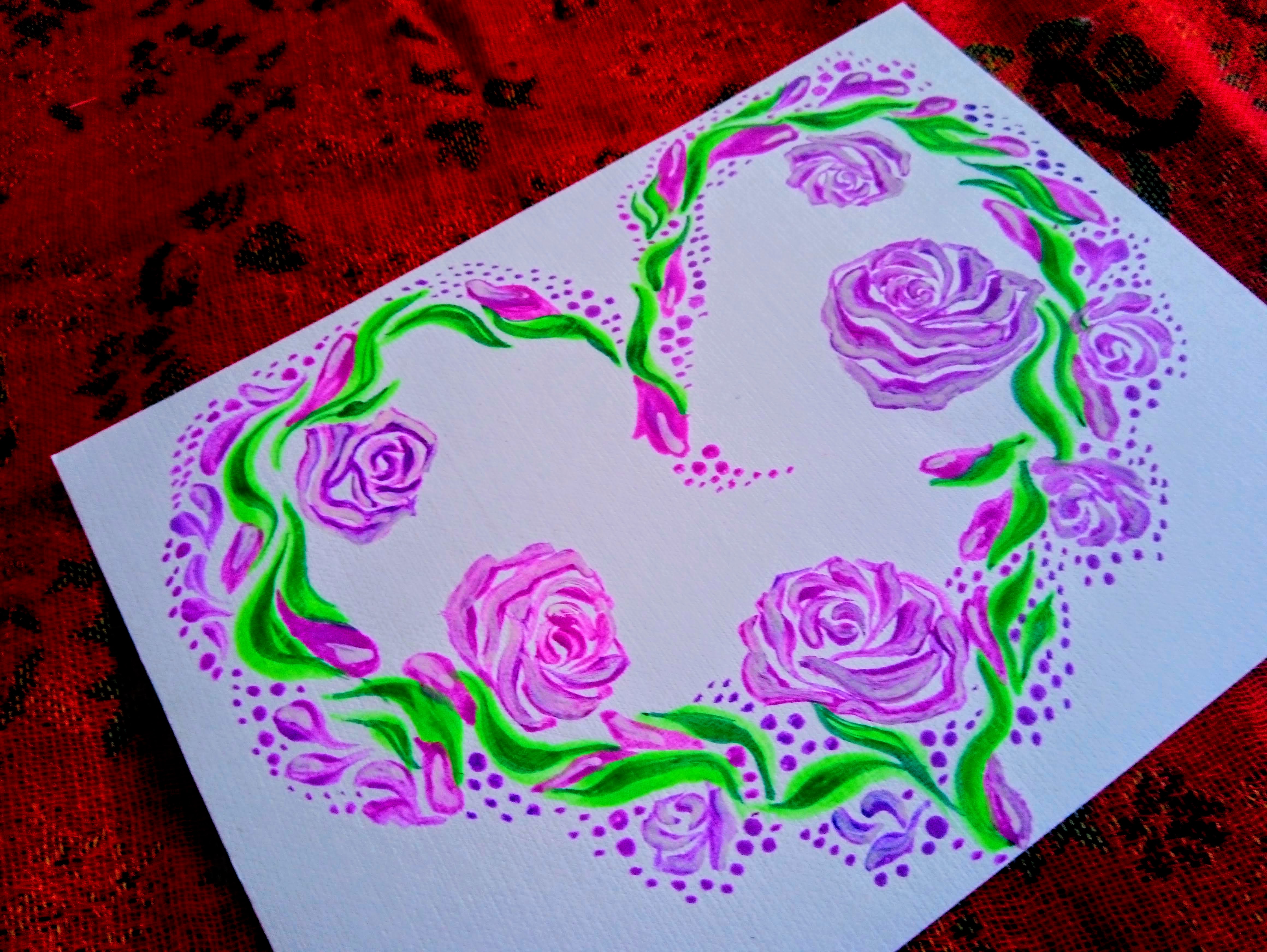 Открытка. Сердце из сиреневых роз