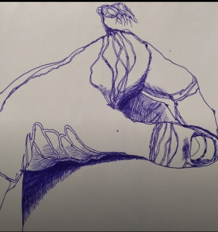 Скечбук синяя ручка графика дерево рисунок