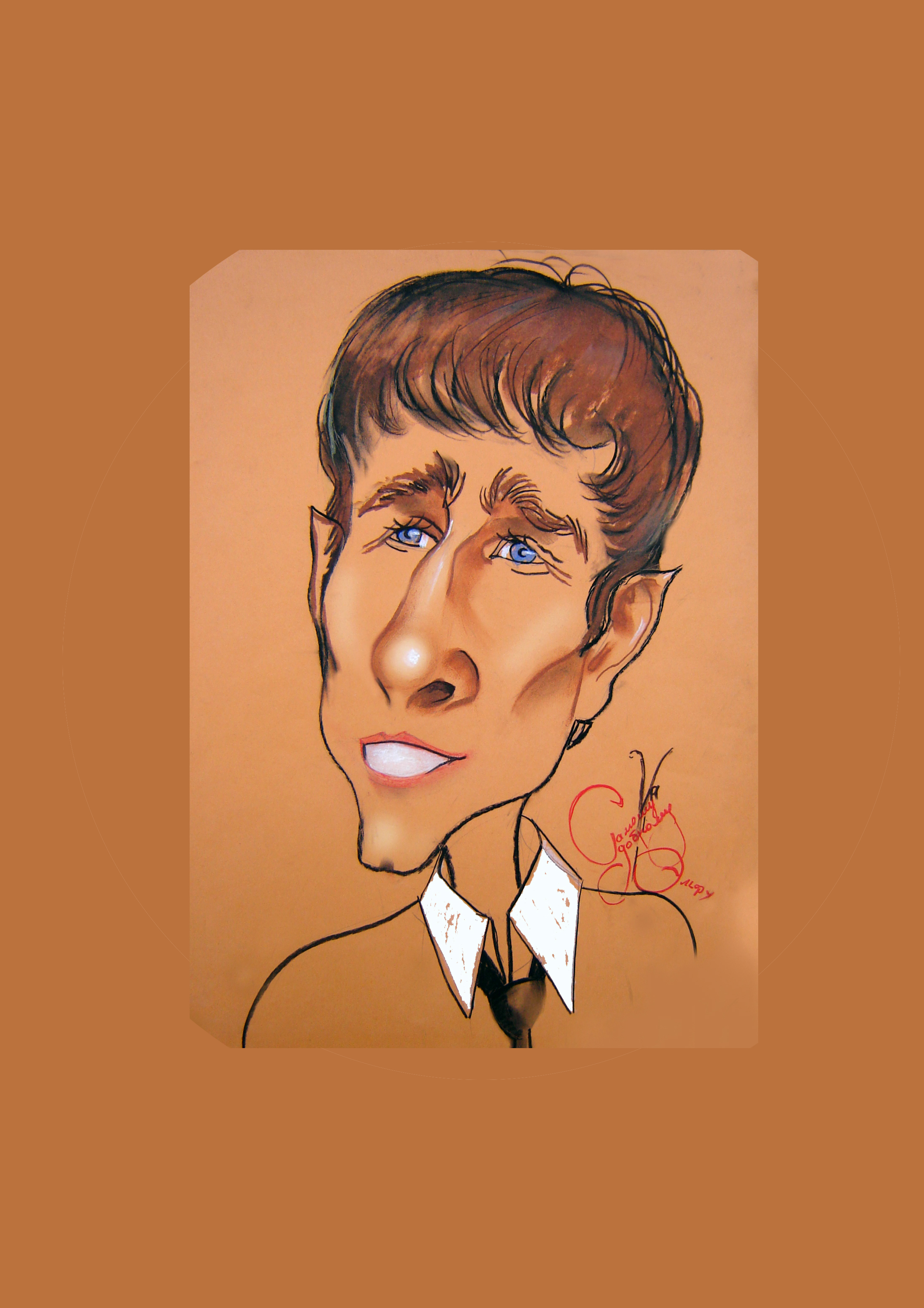 Дружеский шарж, выполненный пастелью на цветном картоне с натуры.