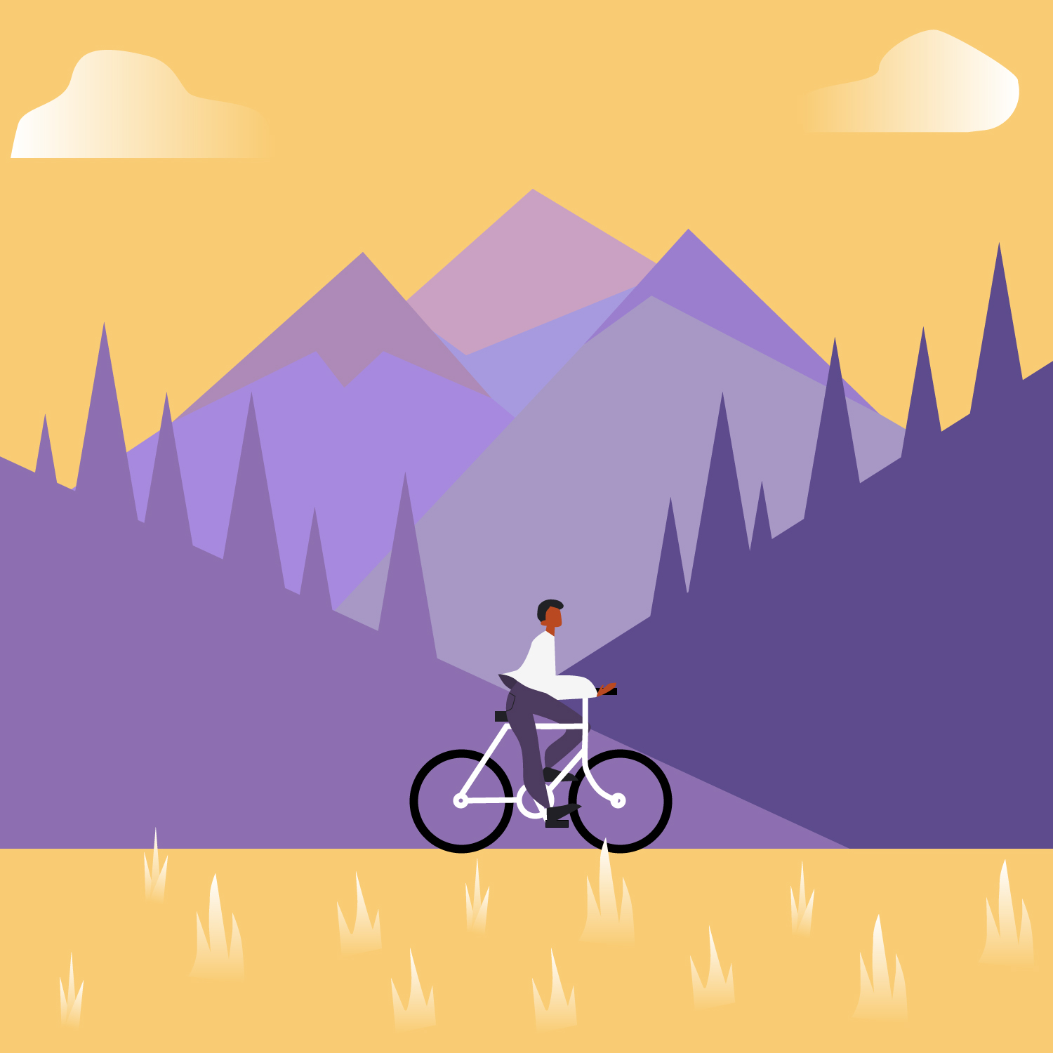 Велосипедист на фоне гор.