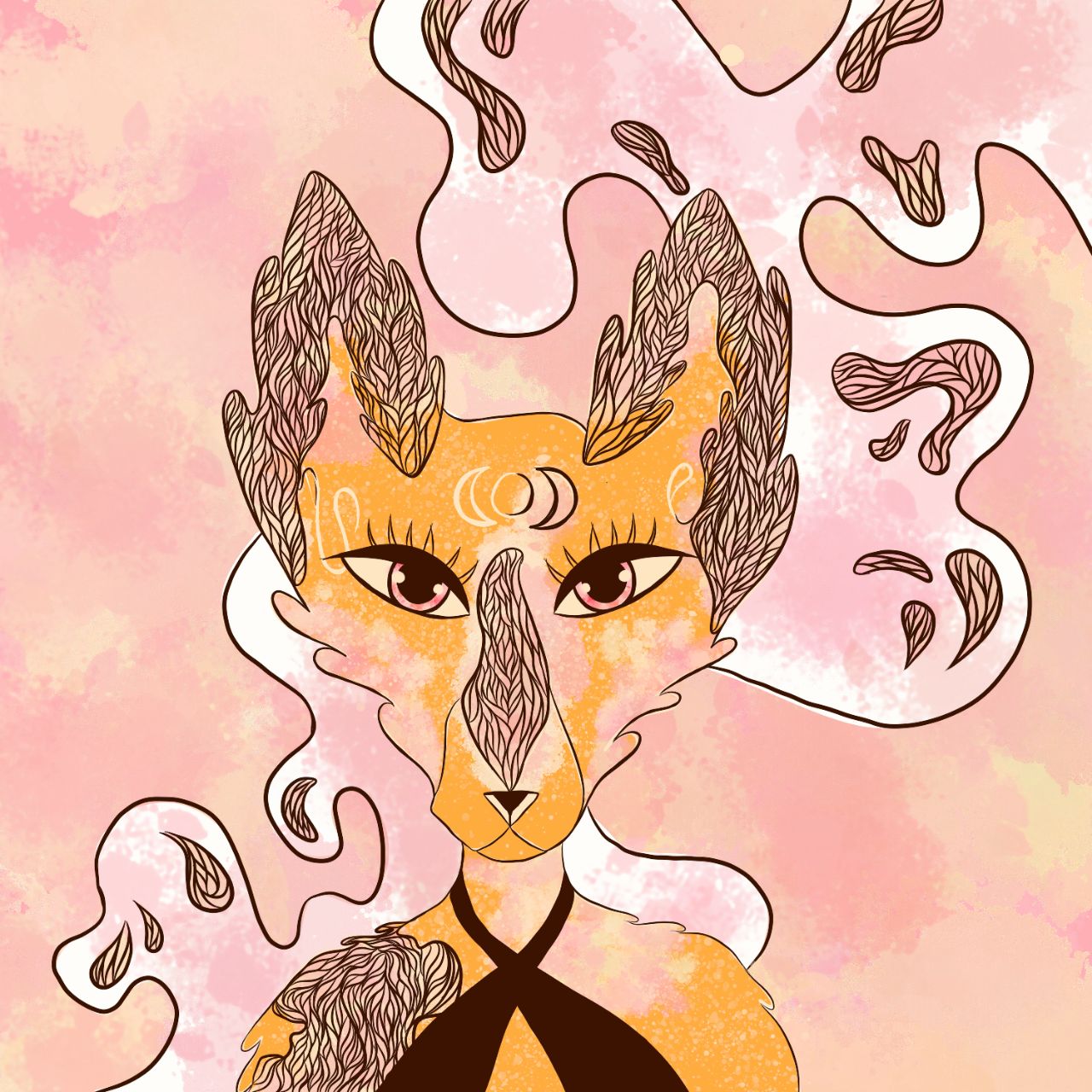 Стилизованный портрет в образ лисы, с добавлением деталей характерных для стиля в котором рисую