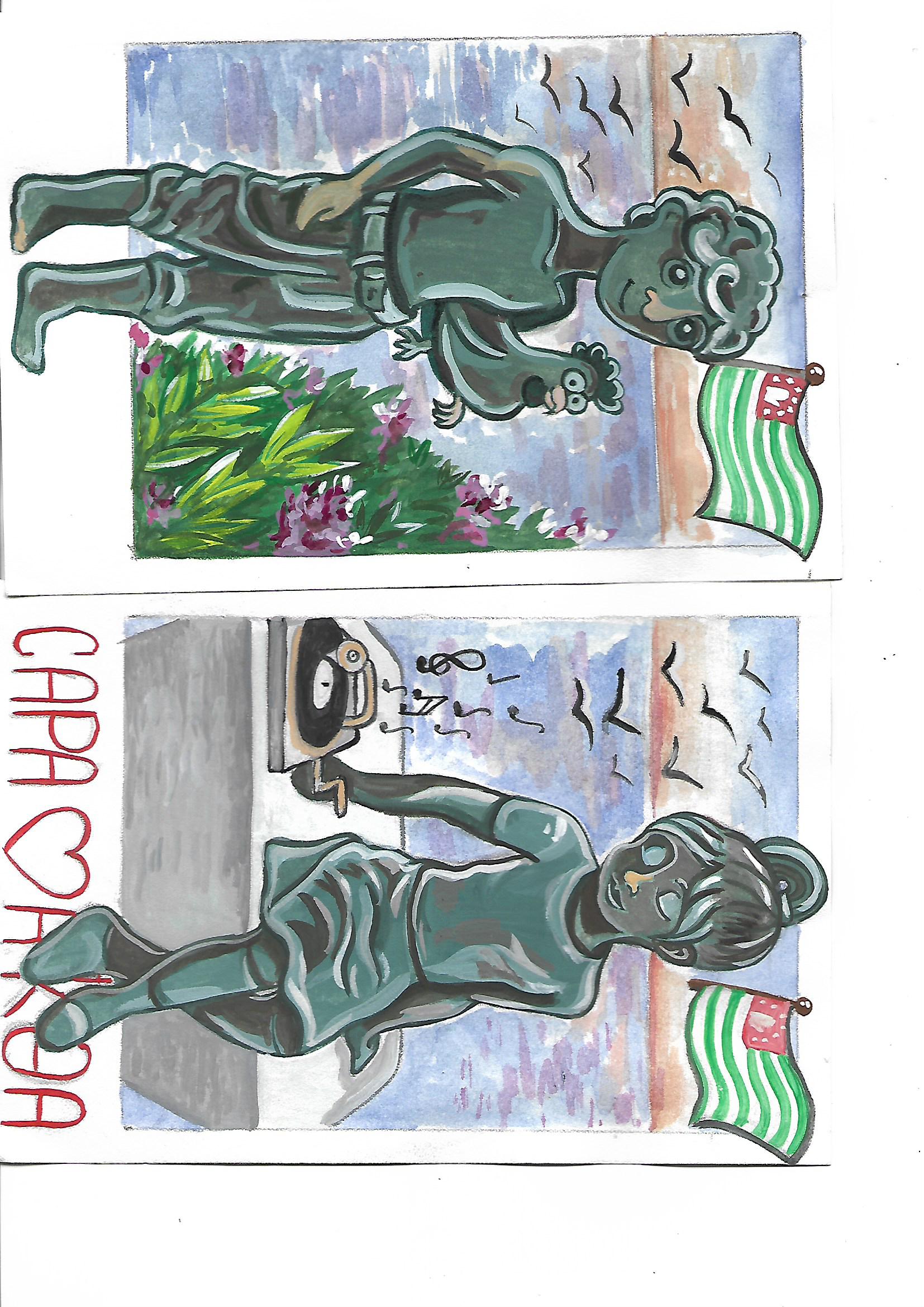 Скульптурные композиции, расположенные на набережной Махаджиров г. Сухум Республики Абхазия. Являются узнаваемыми символами города. "Чик и курица", "Ника и патефон" - герои рассказов Фазиля Искандера.