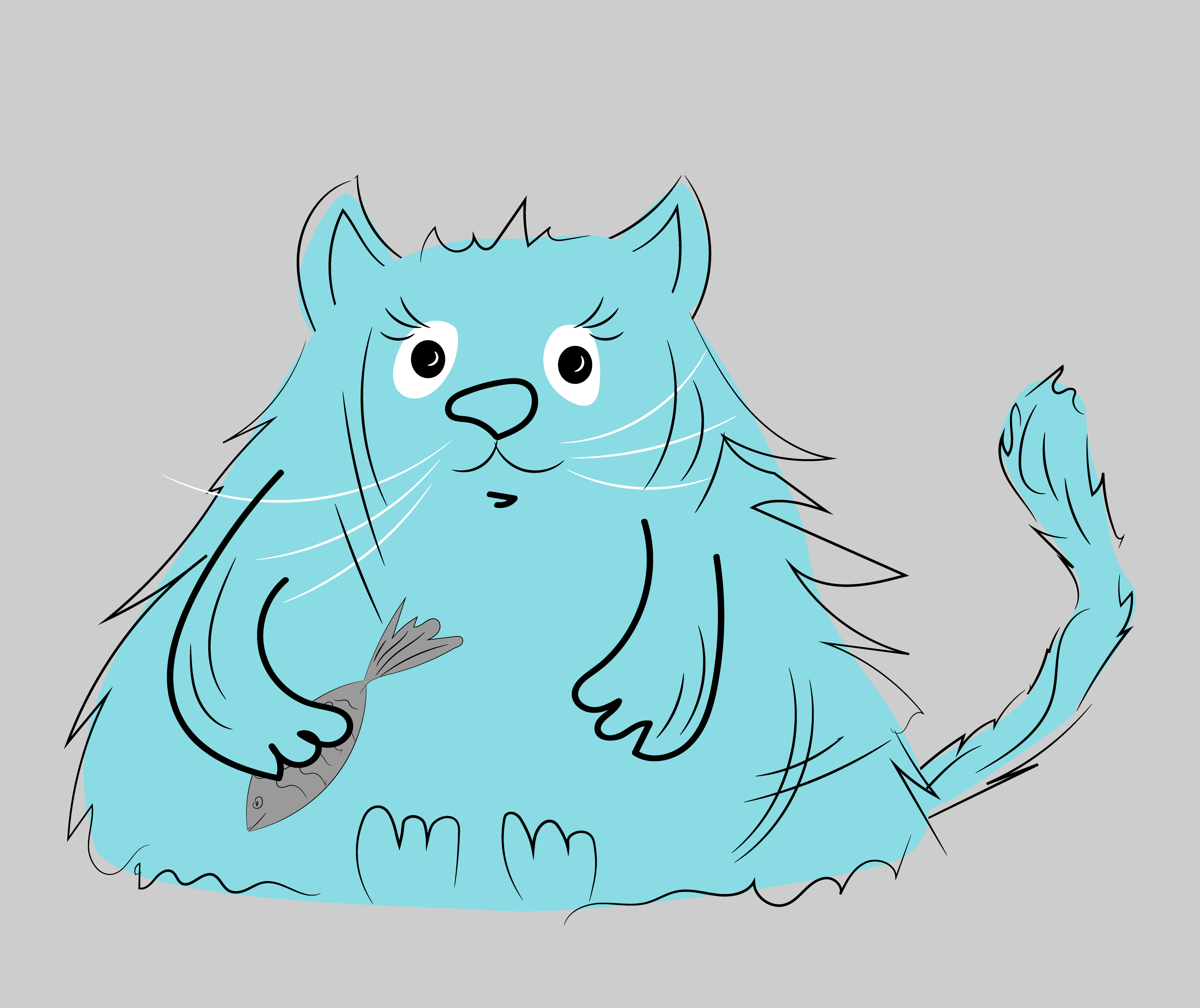 Толстый кот с рыбкой