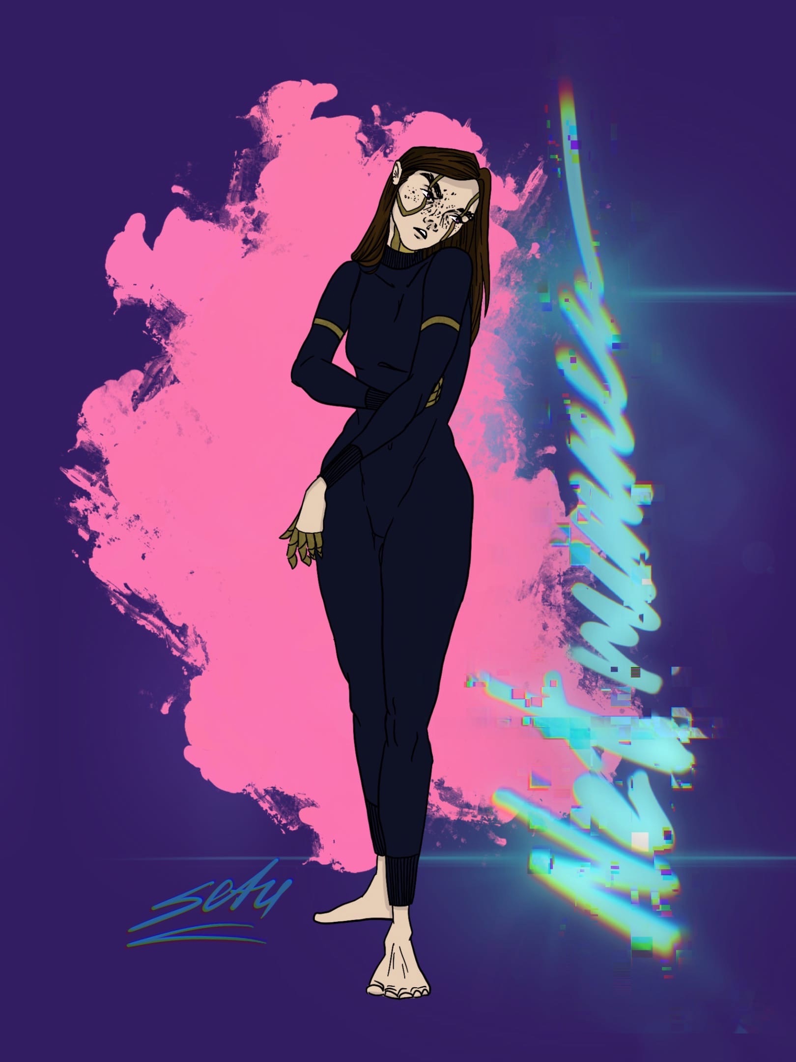 Концепт игрового персонажа-нетраннера игры Cyberpunk 2077. Выполнено на iPad в приложении Procreate