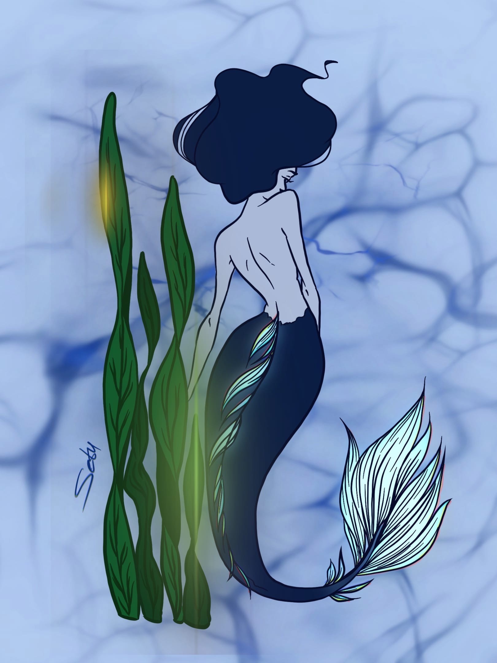 Рисунок сказочной русалки для иллюстраций