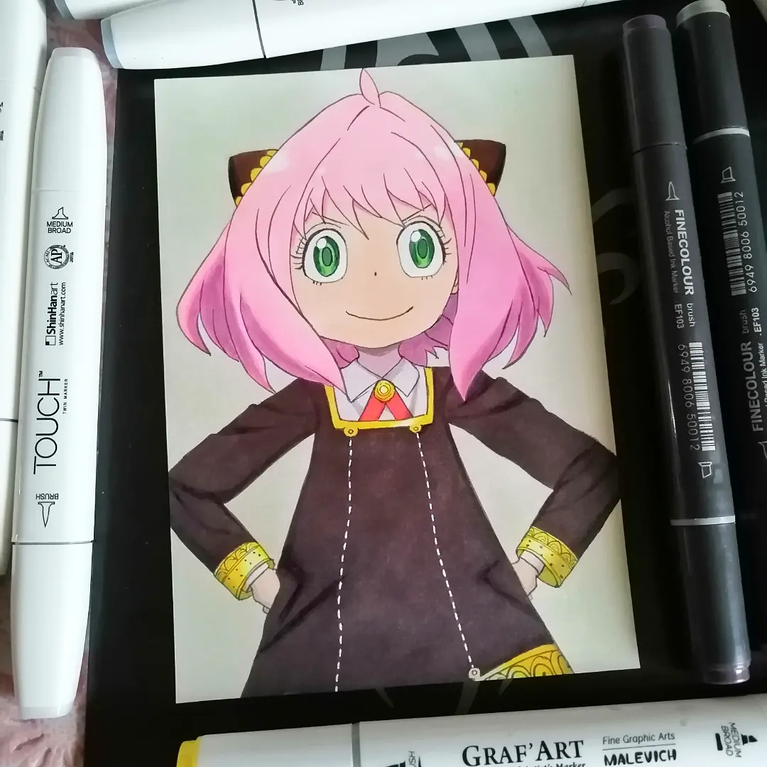 Малышка Аня из аниме Семья шпиона. Материал спиртовые маркеры. Размер А6.