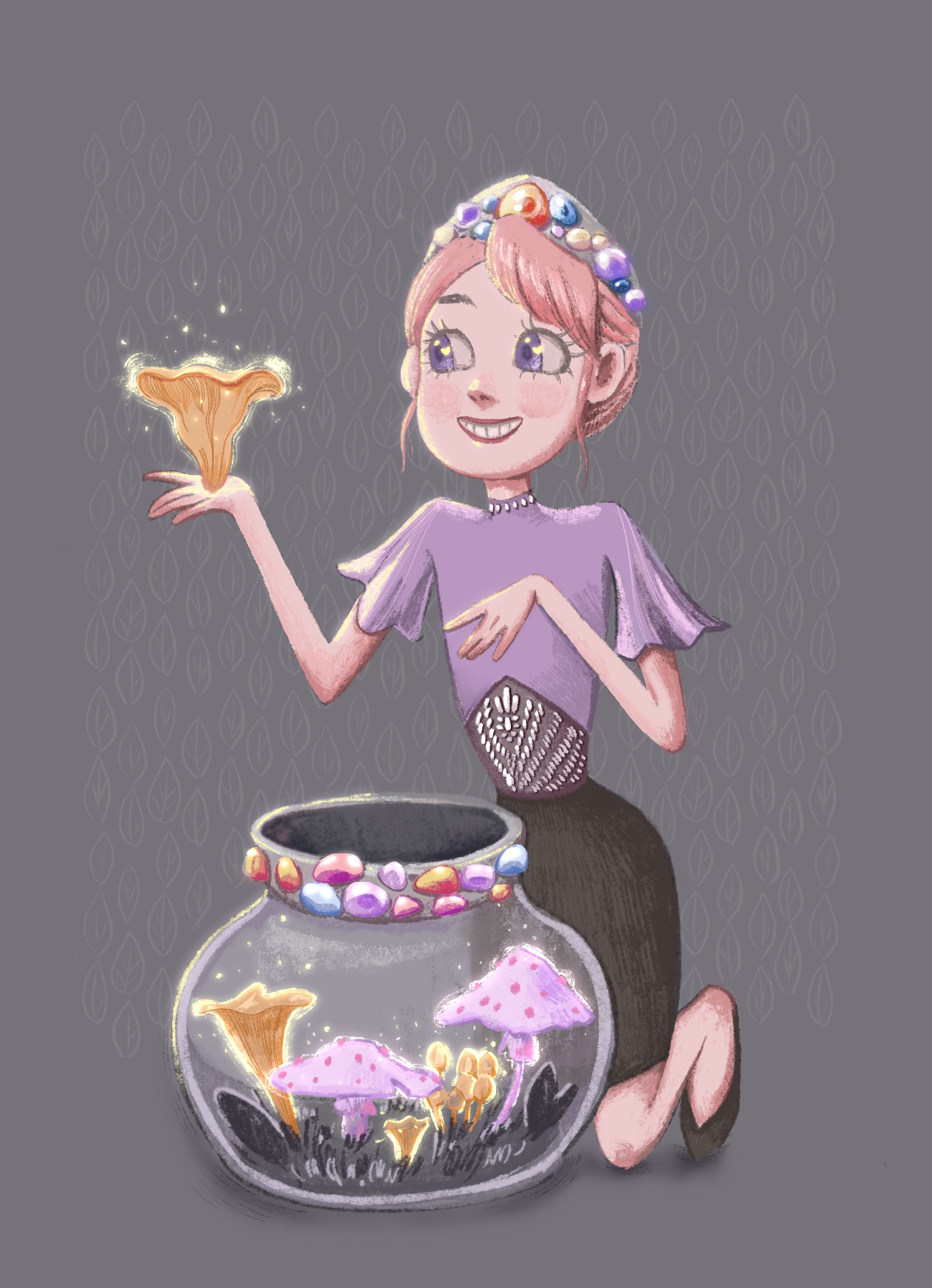 Дева, выращивающая светящиеся грибы в вазах, банках и колбочках. А ещё она очень любит драгоценные камни и сияние звёзд!
