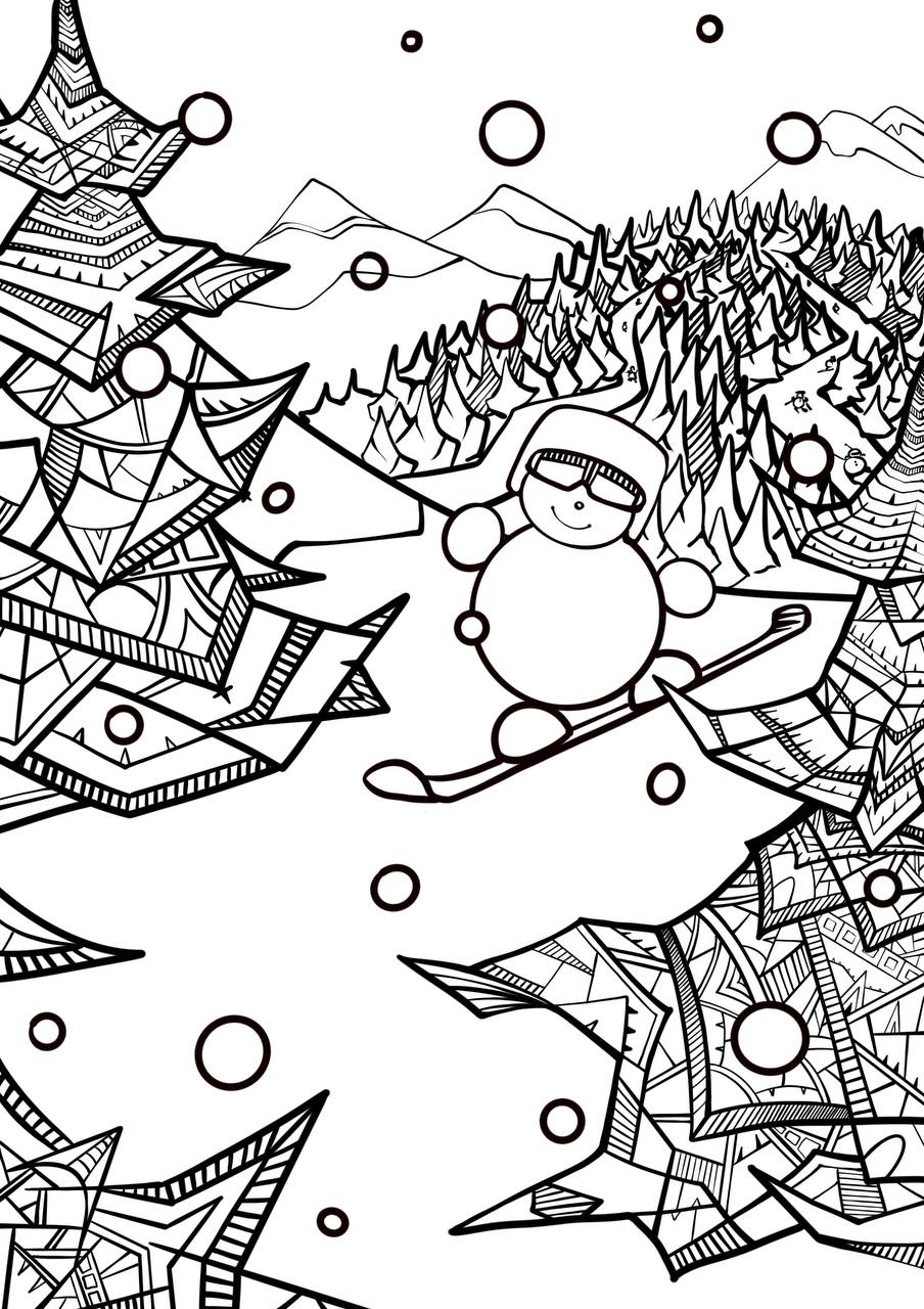 снеговик катается на сноуборде