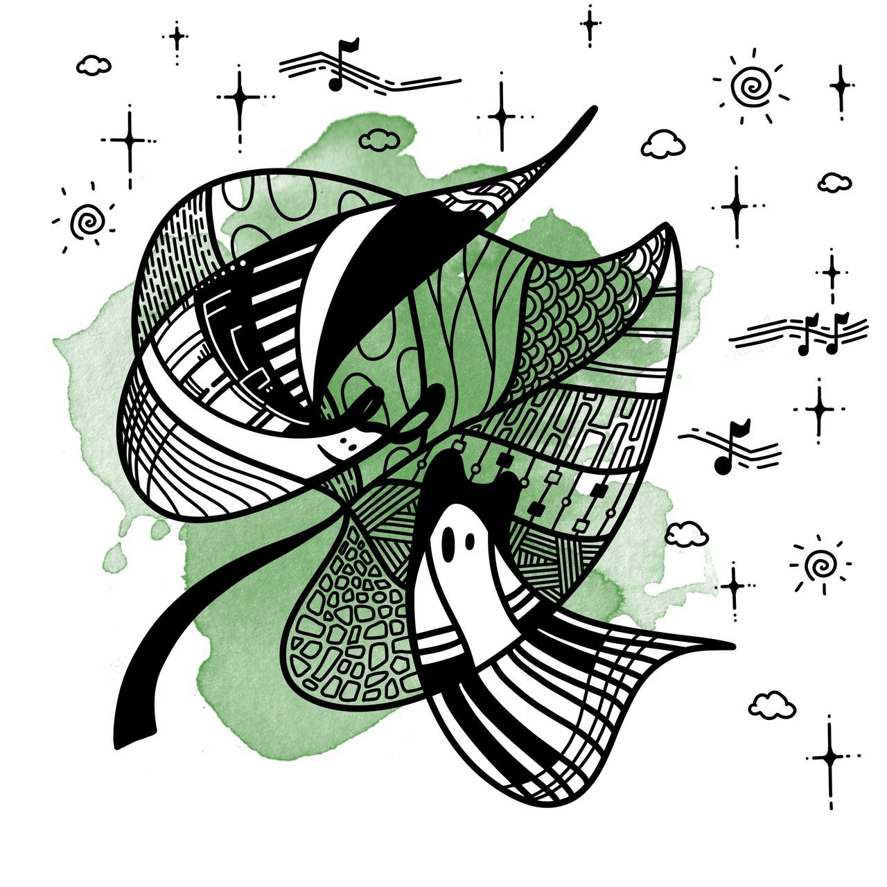 встреча двоих на листочке под звуки музыки