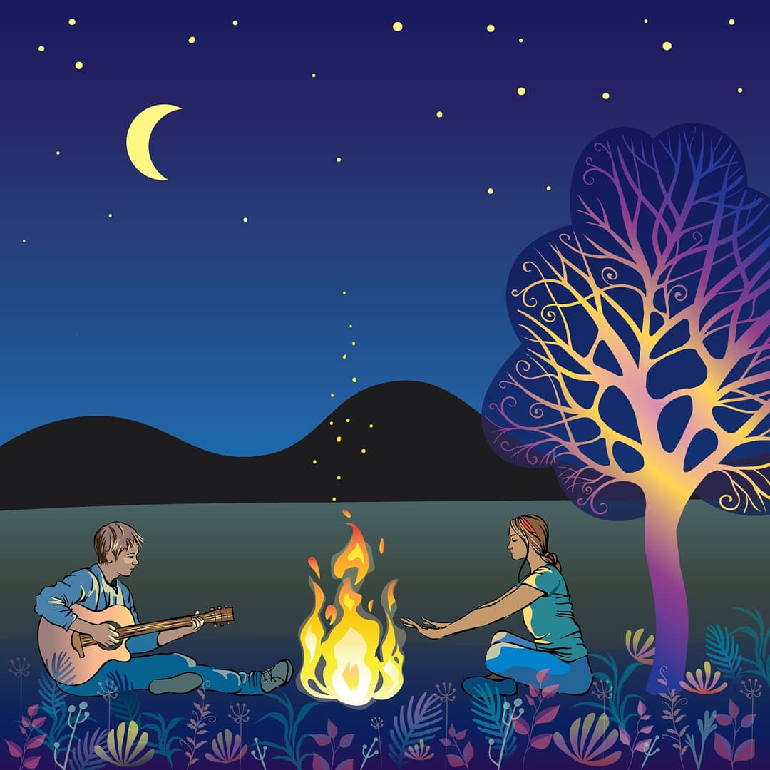 Парень и девушка у костра