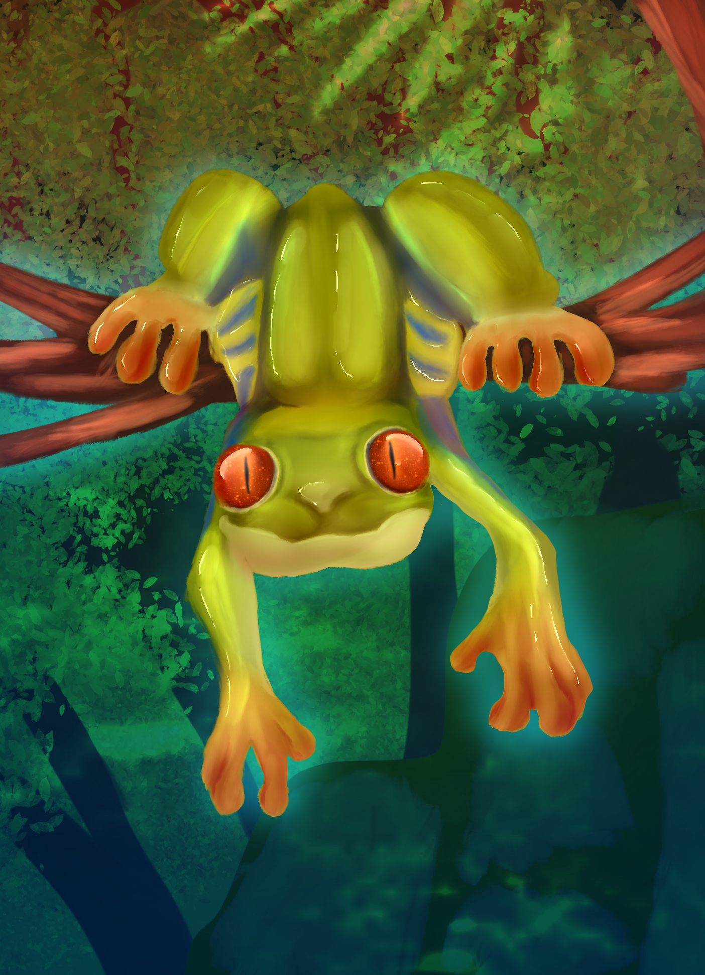 Арт красноглазой квашки,свисающий на ветке дерева. Время на арт 6 часов. Слоев 50