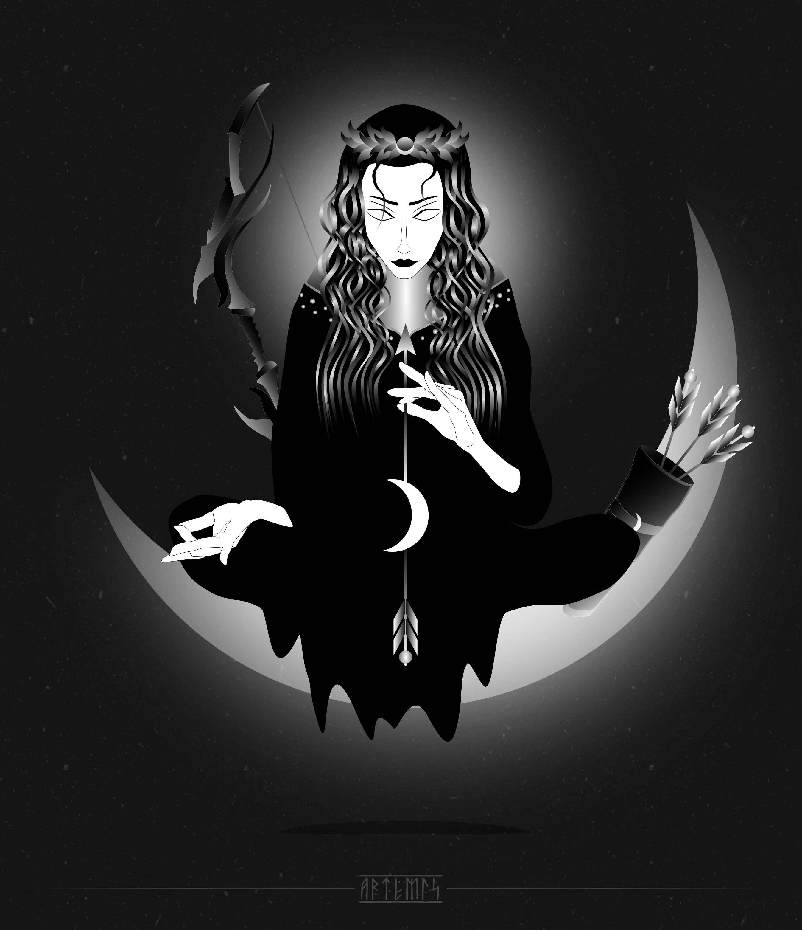 Артемида известна в первую очередь как богиня охоты, но, кроме того, она еще и богиня Луны, с ее образом ассоциируется именно новолуние, как символ молодой, целомудренной силы.