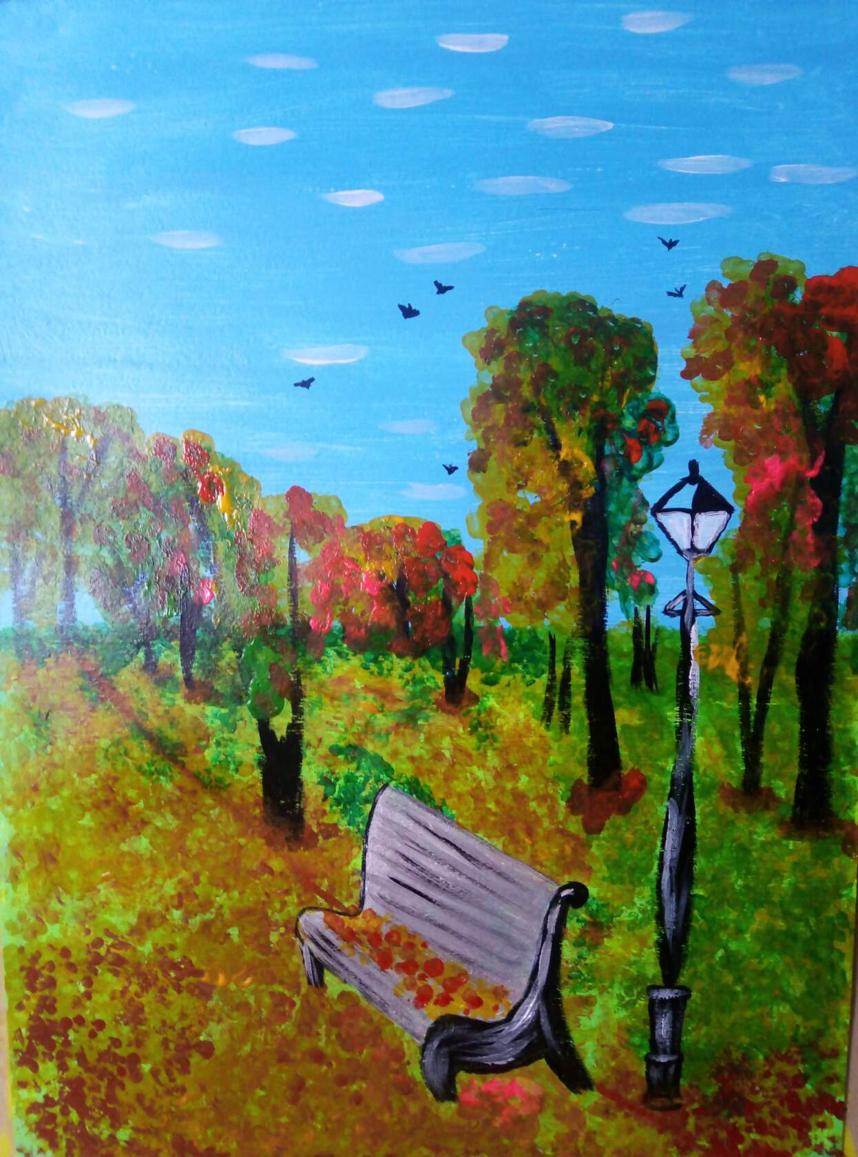 Nazvanie: "Zolotaya osen' ". Rabotala s akrilom.