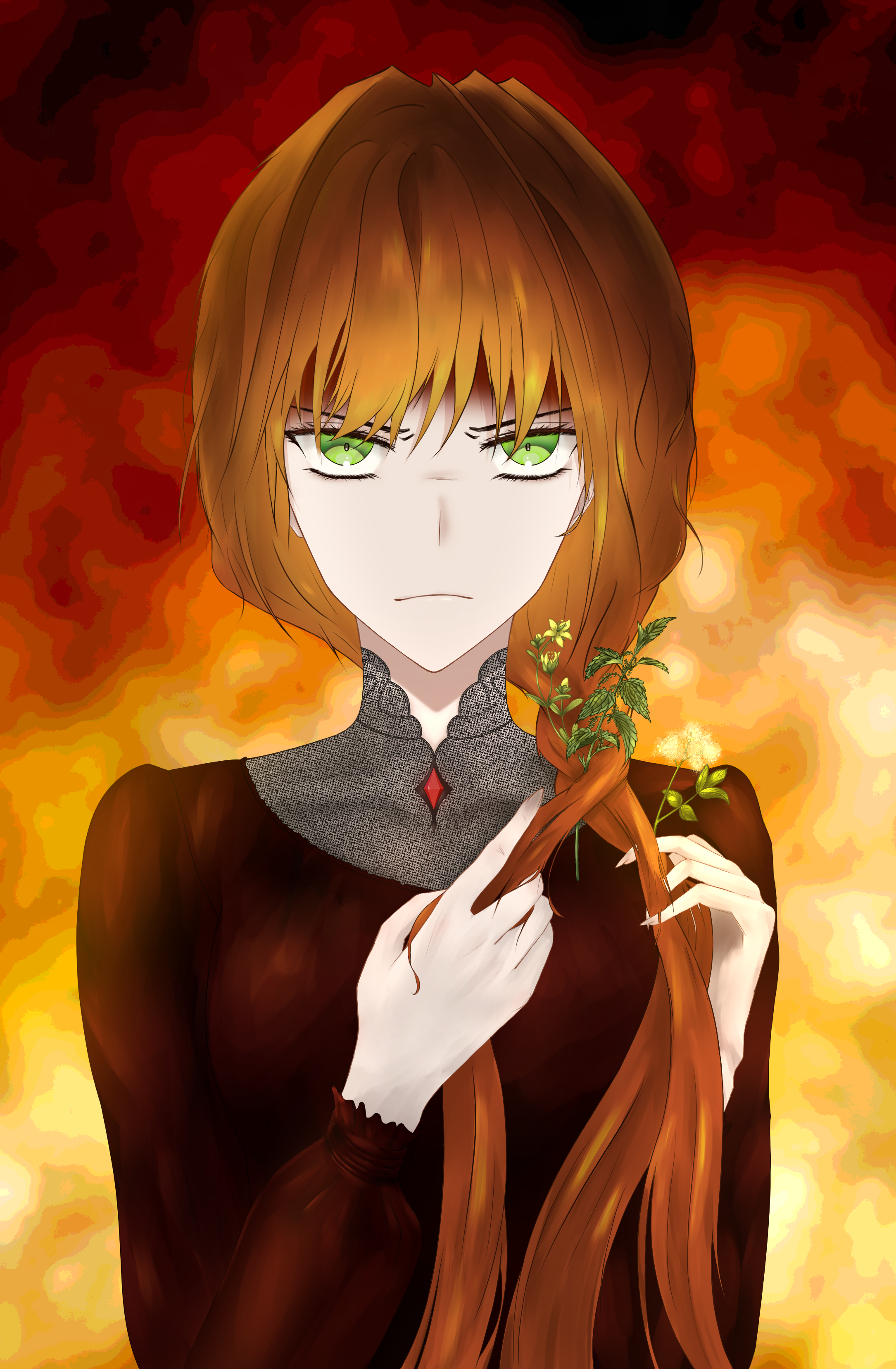 Аниме девушка вплетающая в волосы бузину, крапиву и зверобой