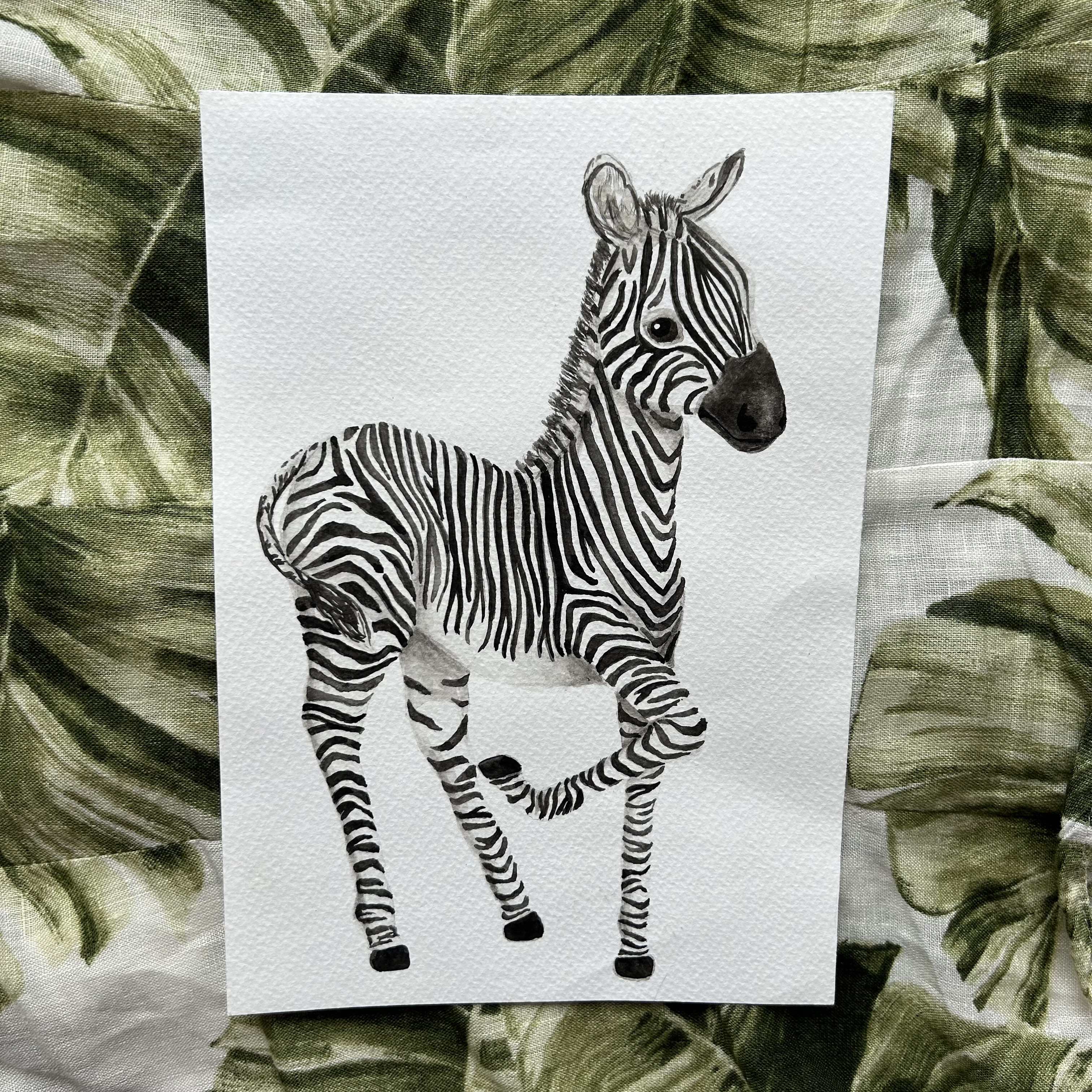 Милая зебра акварелью