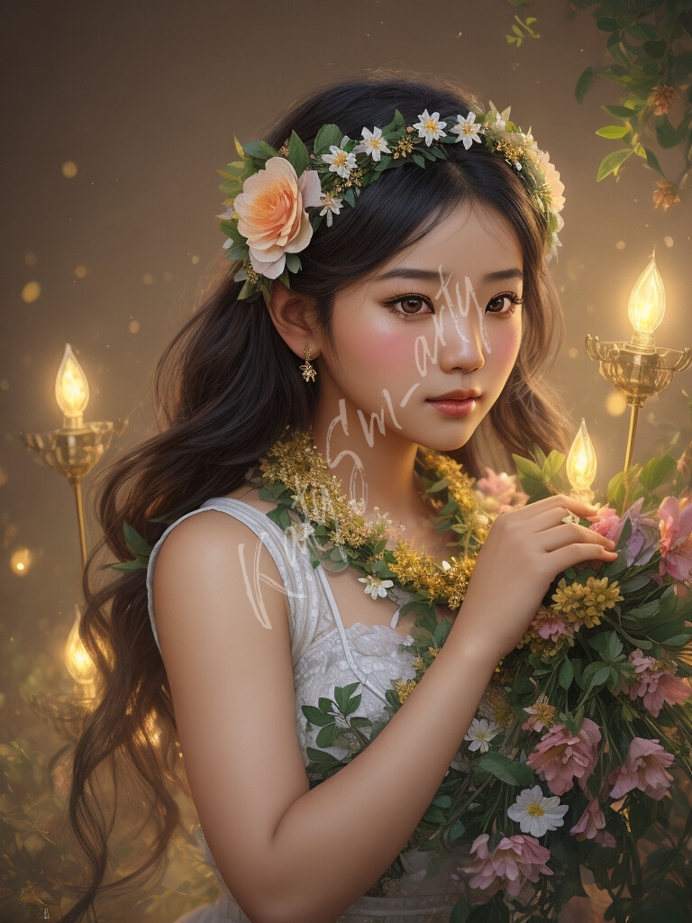 Нейроарт, девушка с цветами