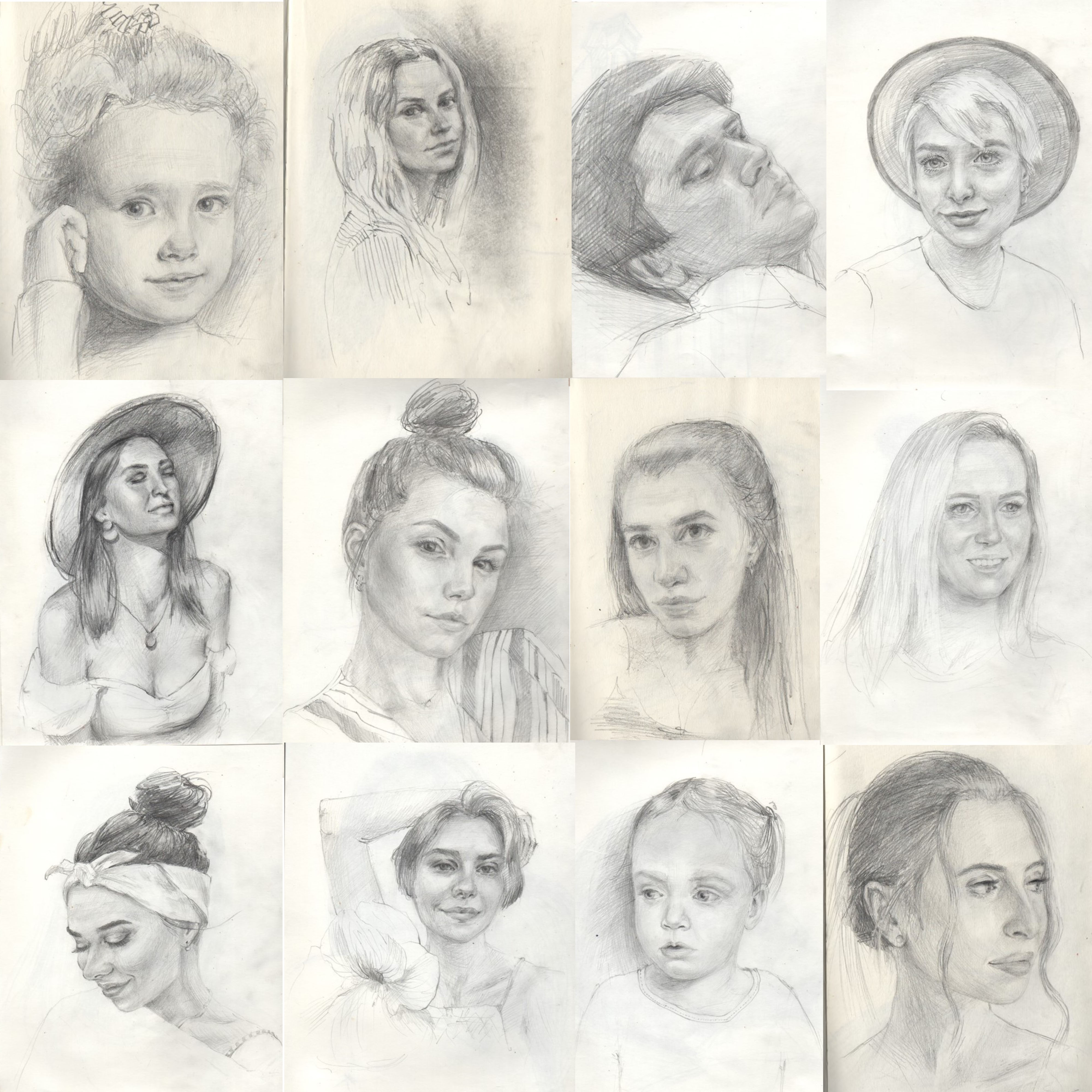 Портретные наброски карандашом