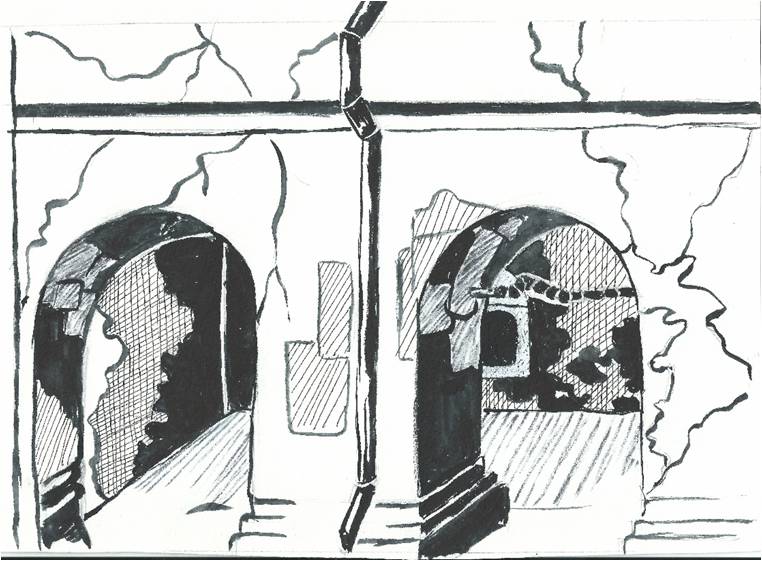 Подворье. Чб, гуашь, линер