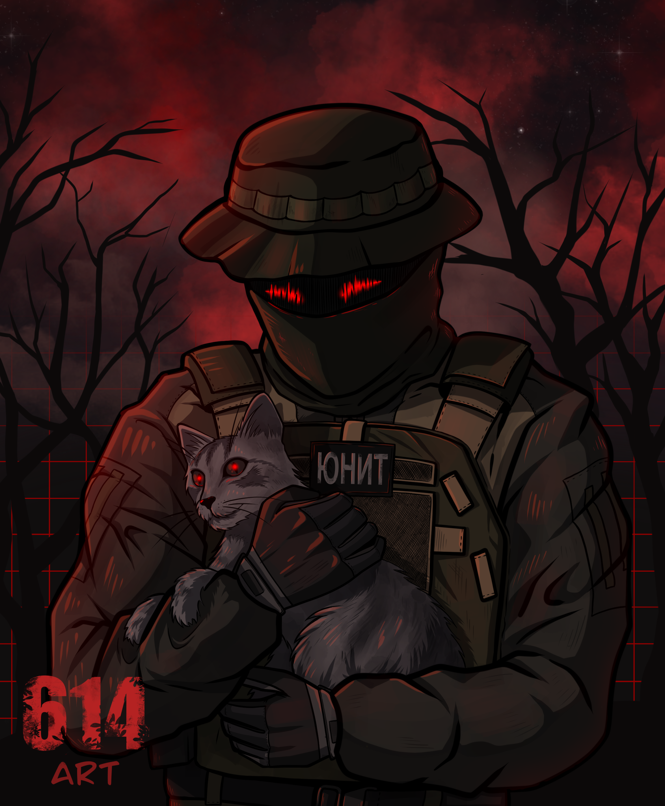 Иллюстрация солдата с котом на руках