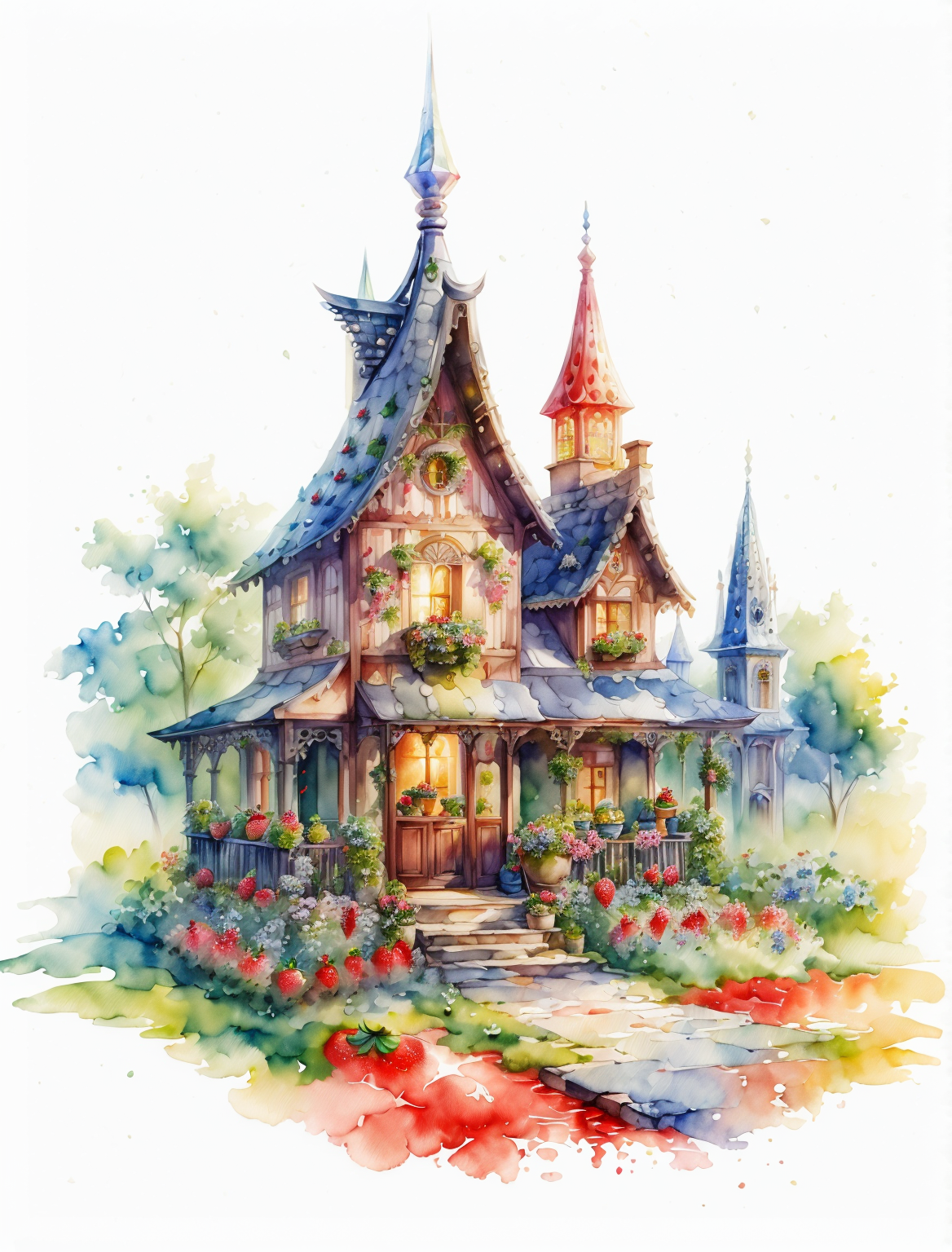 Сказочный дом с клубникой и цветами