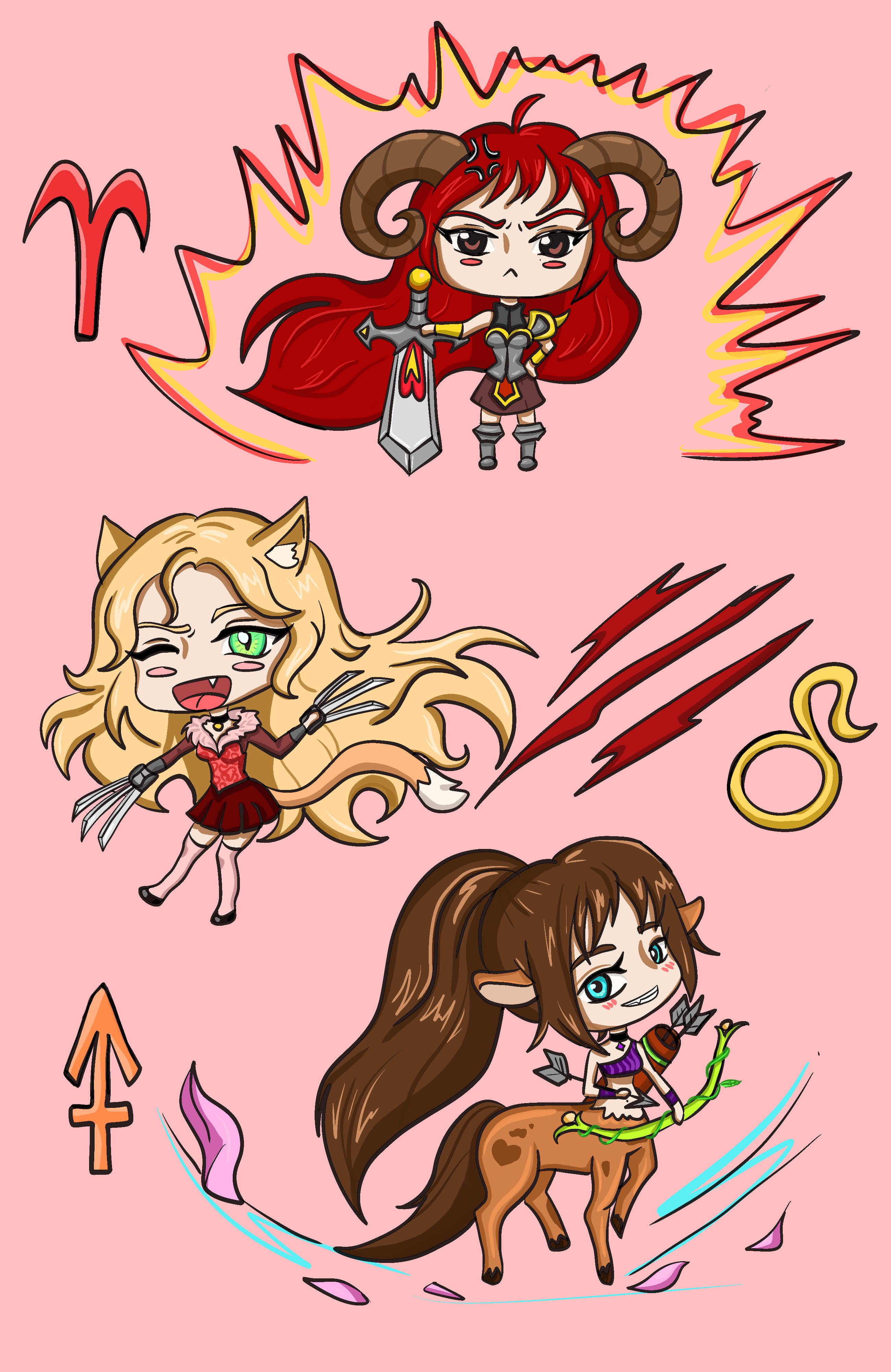 Огненные знаки зодиака в стиле чиби