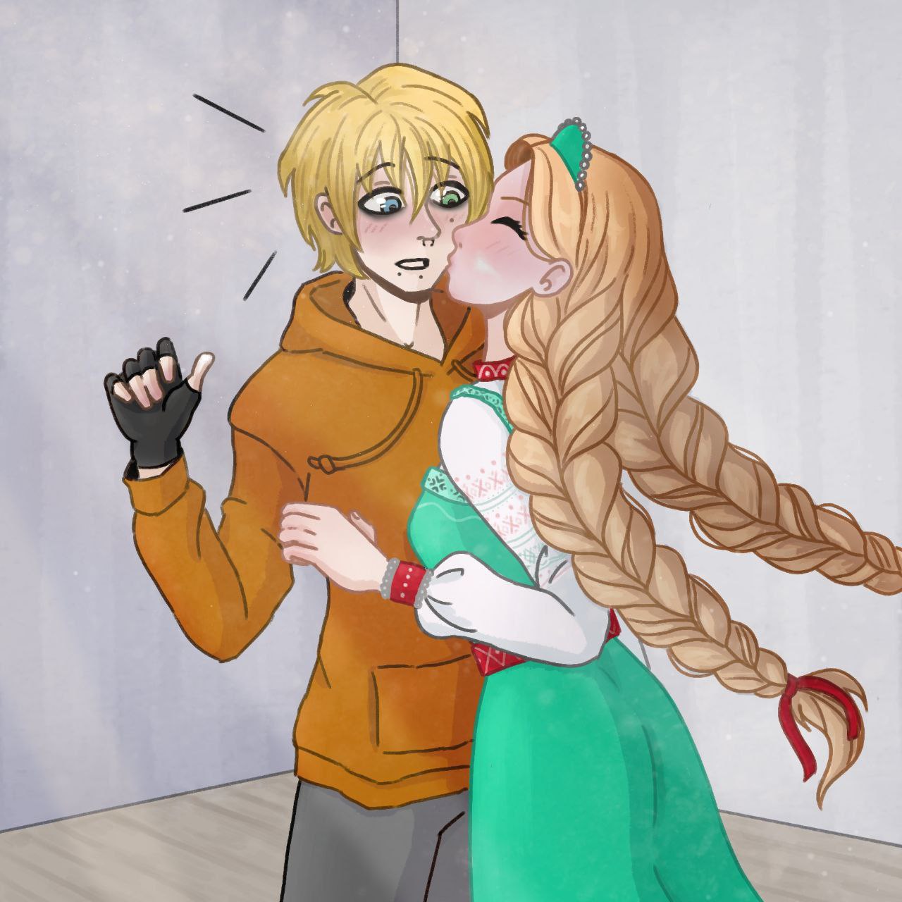 Иллюстрация к рассказу. Во время ремонта Славянка чмокнула смущенного парня в щечку