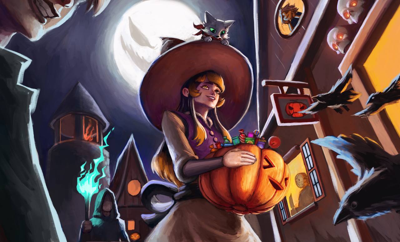 Рисовал на интерактив одного художника в телеграм, на тему хеллоуин
