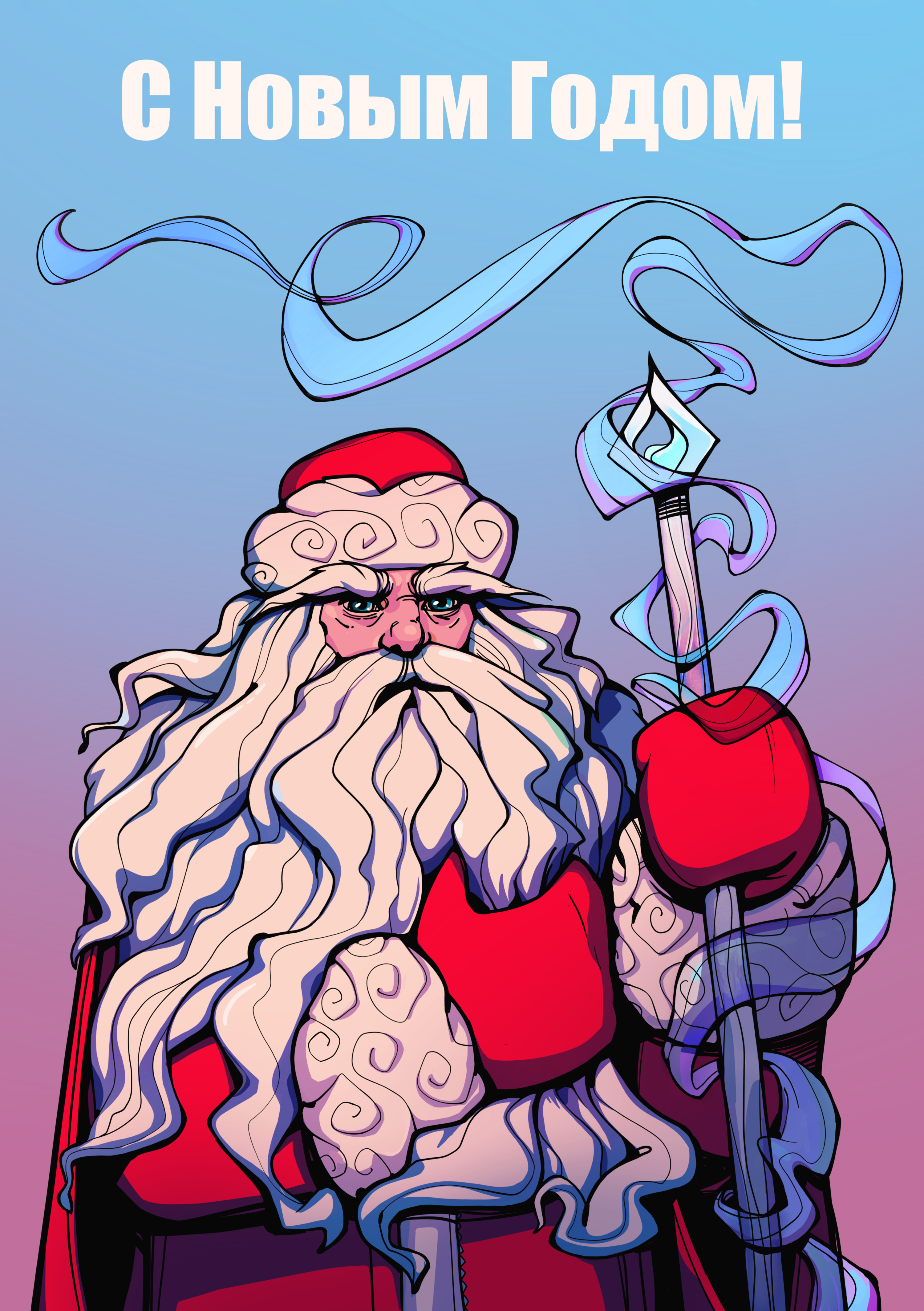 Новогодняя открытка с Дедом Морозом в стиле игры Hades
