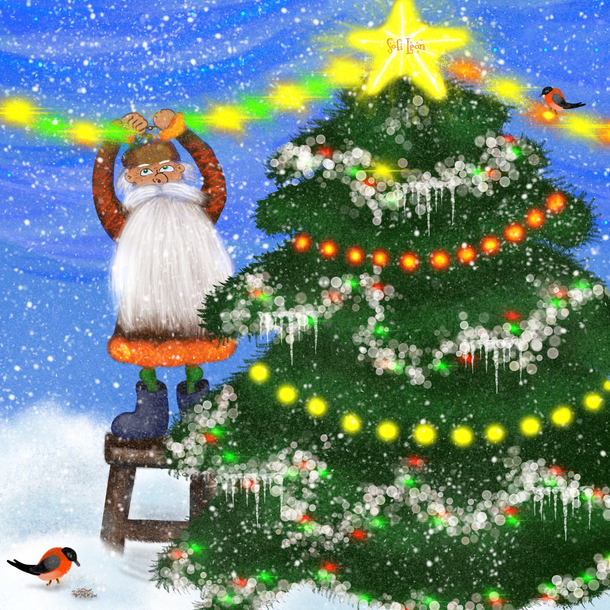 Дед Онуфрий и новогоднее оформление