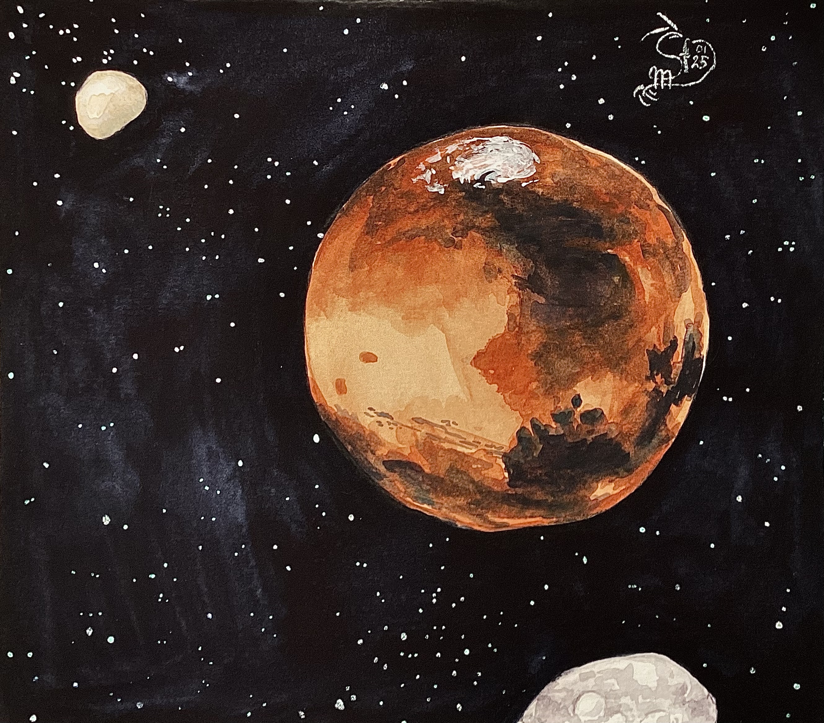 Марс и оба его спутника.