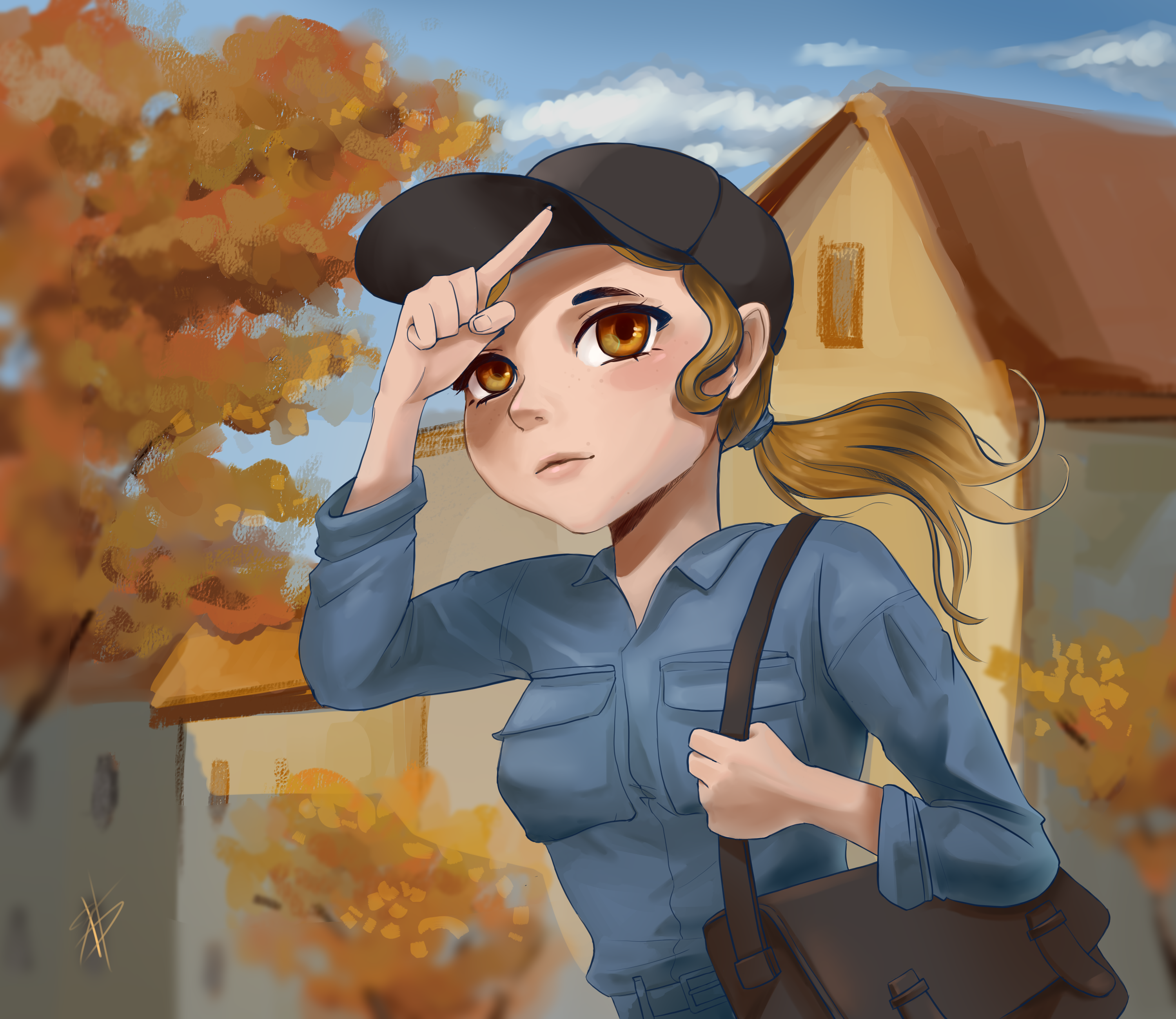 В данной иллюстрации отражены поиски собственного стиля и желание передать осеннюю атмосферу. Ранняя очень, еще не так холодно для черного пальто, можно наслаждаться дорогой на работу
