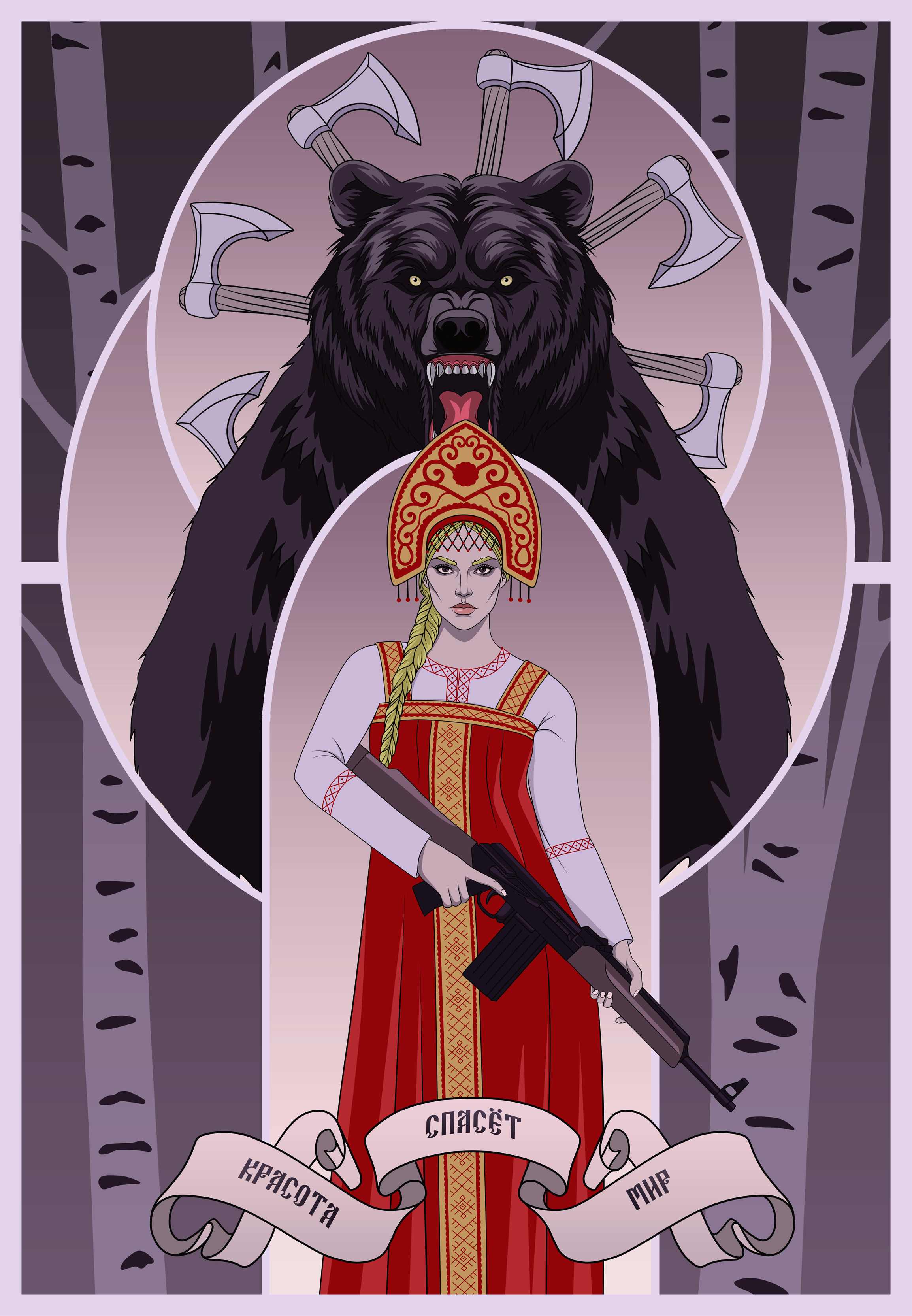 Маша, медведь, ружьё и топоры
