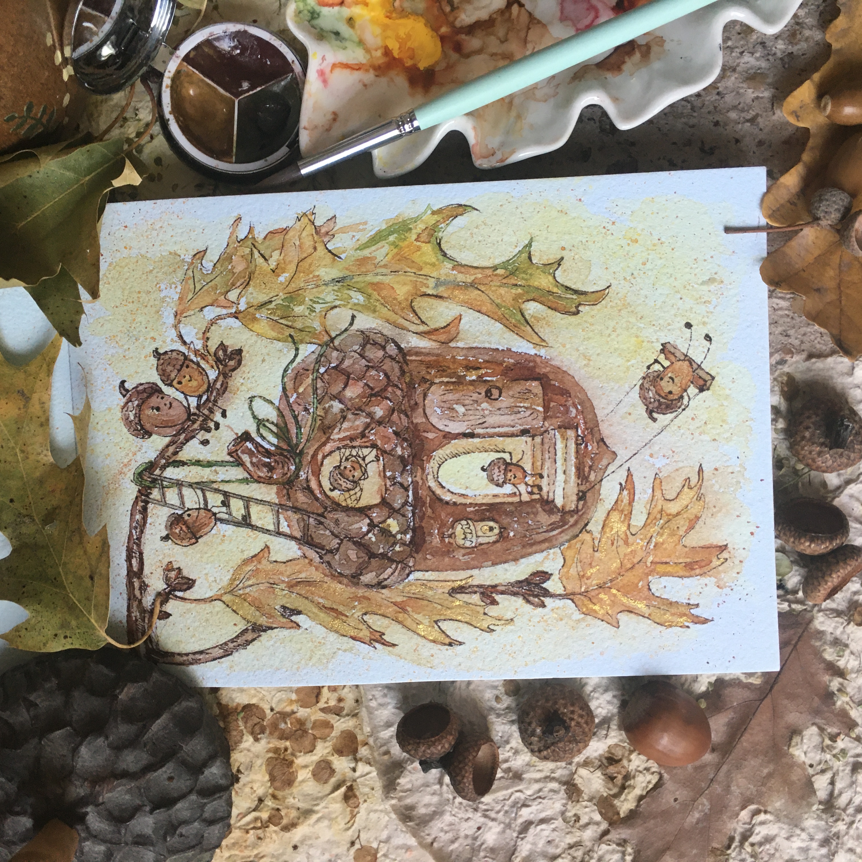 Сказочный жёлудь-дом с маленькими жителями