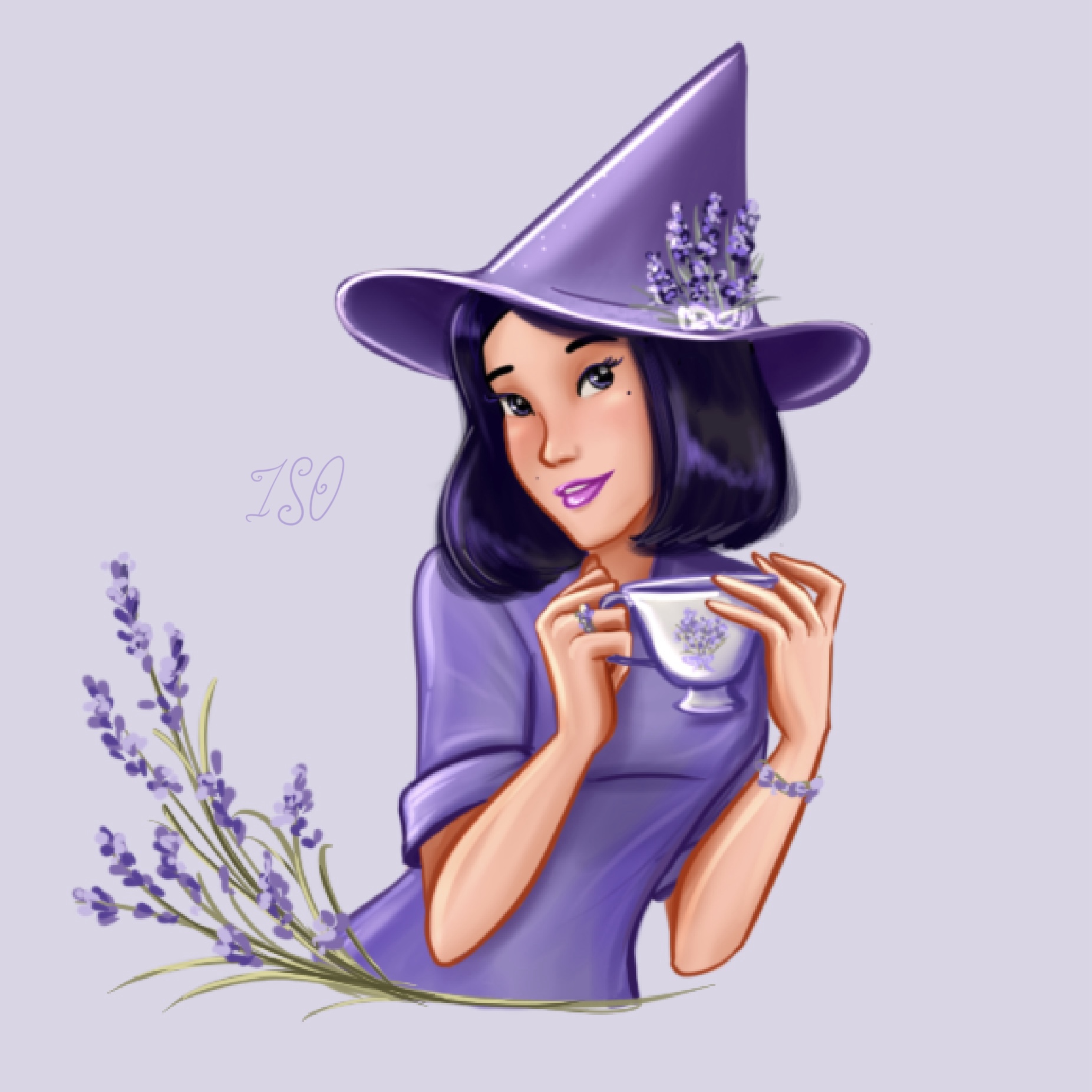 Волшебница за чашечкой ароматного лавандового чая. Персонаж разработан для дизайна чайной упаковки.