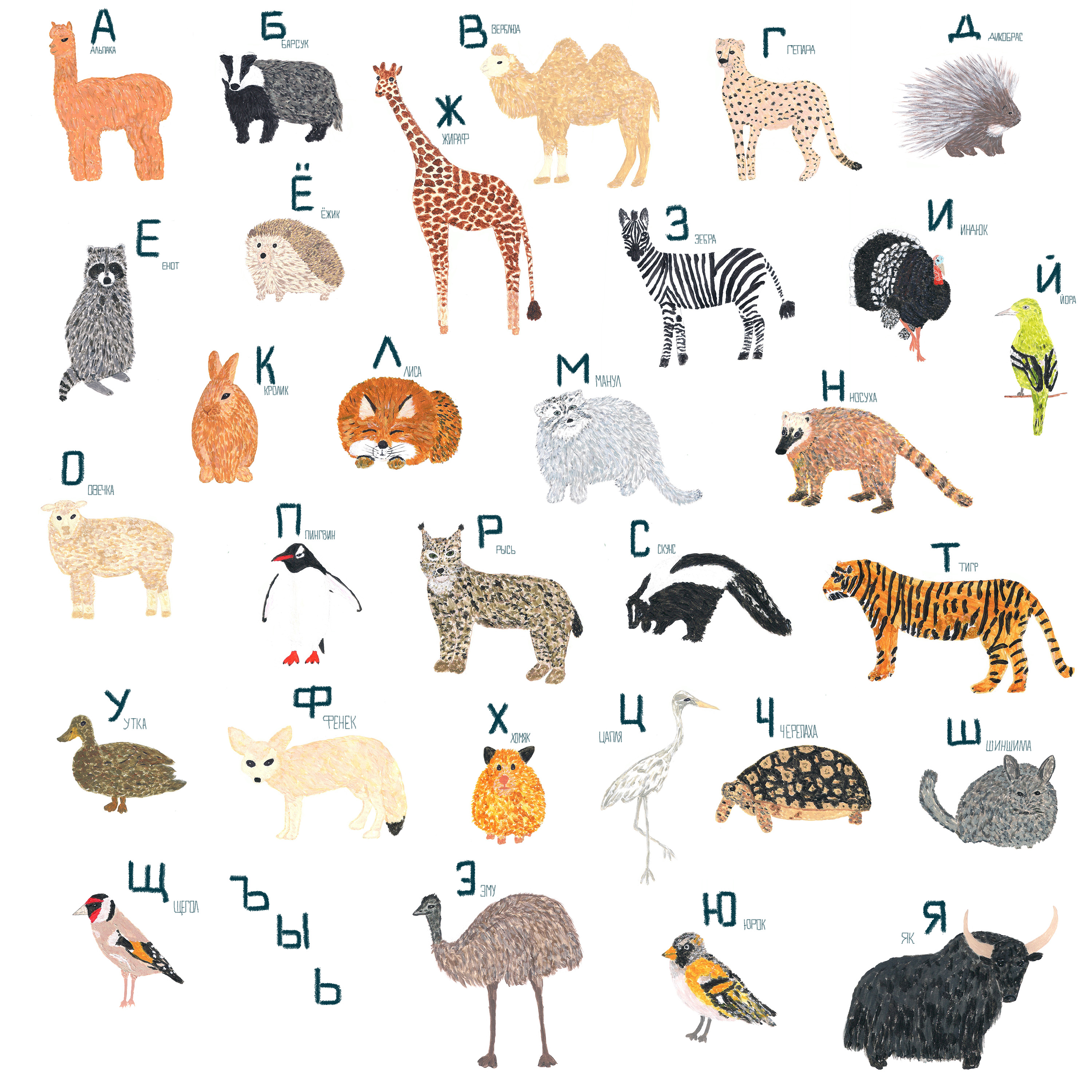 Алфавит для детей Животные и птицы