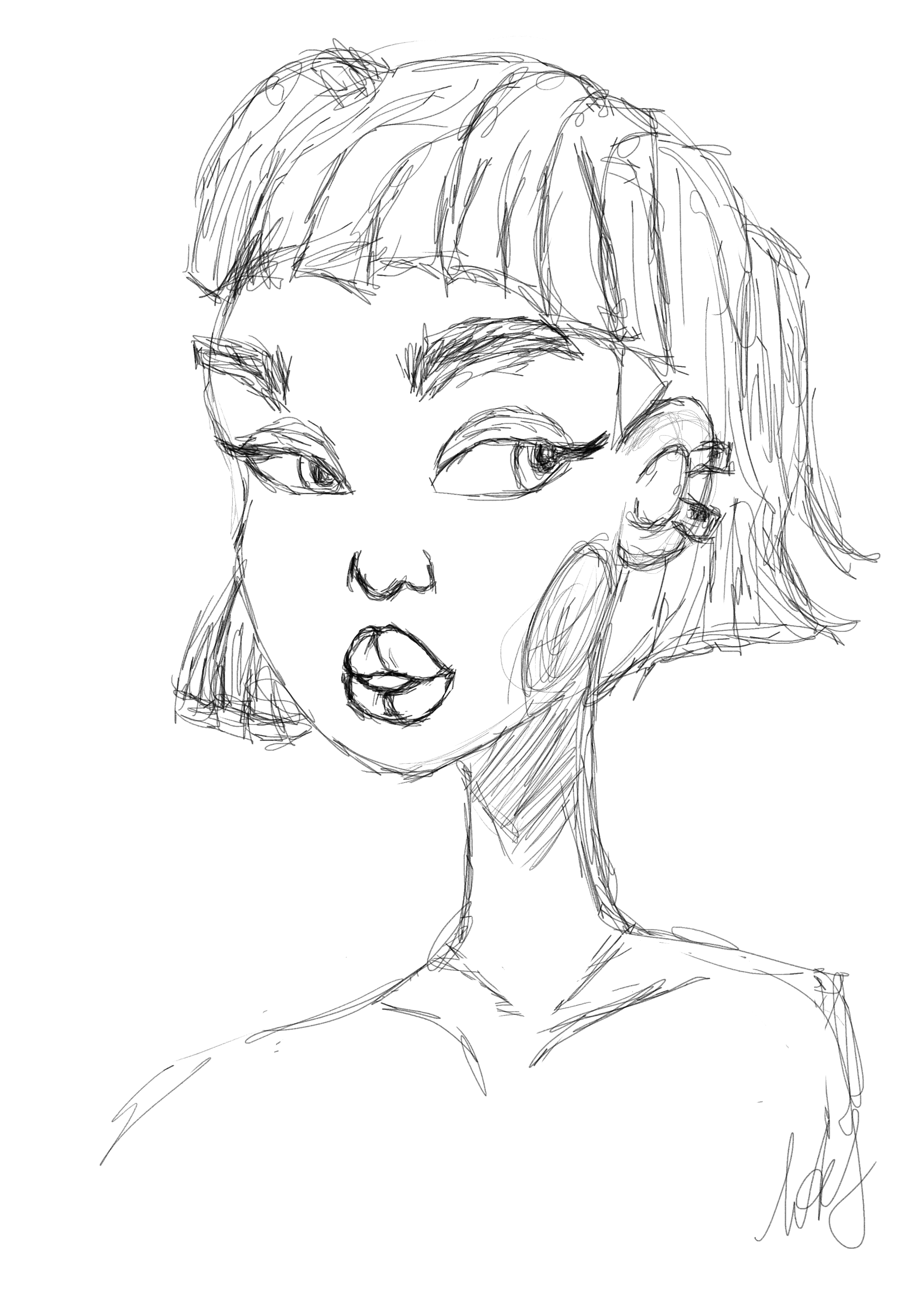 портрет девушки выполнен в формате скетча .