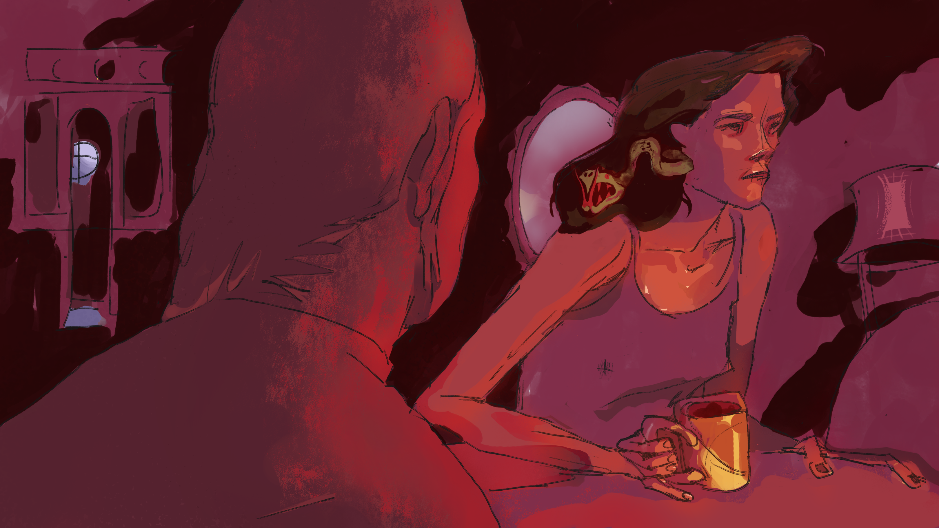 За шторами