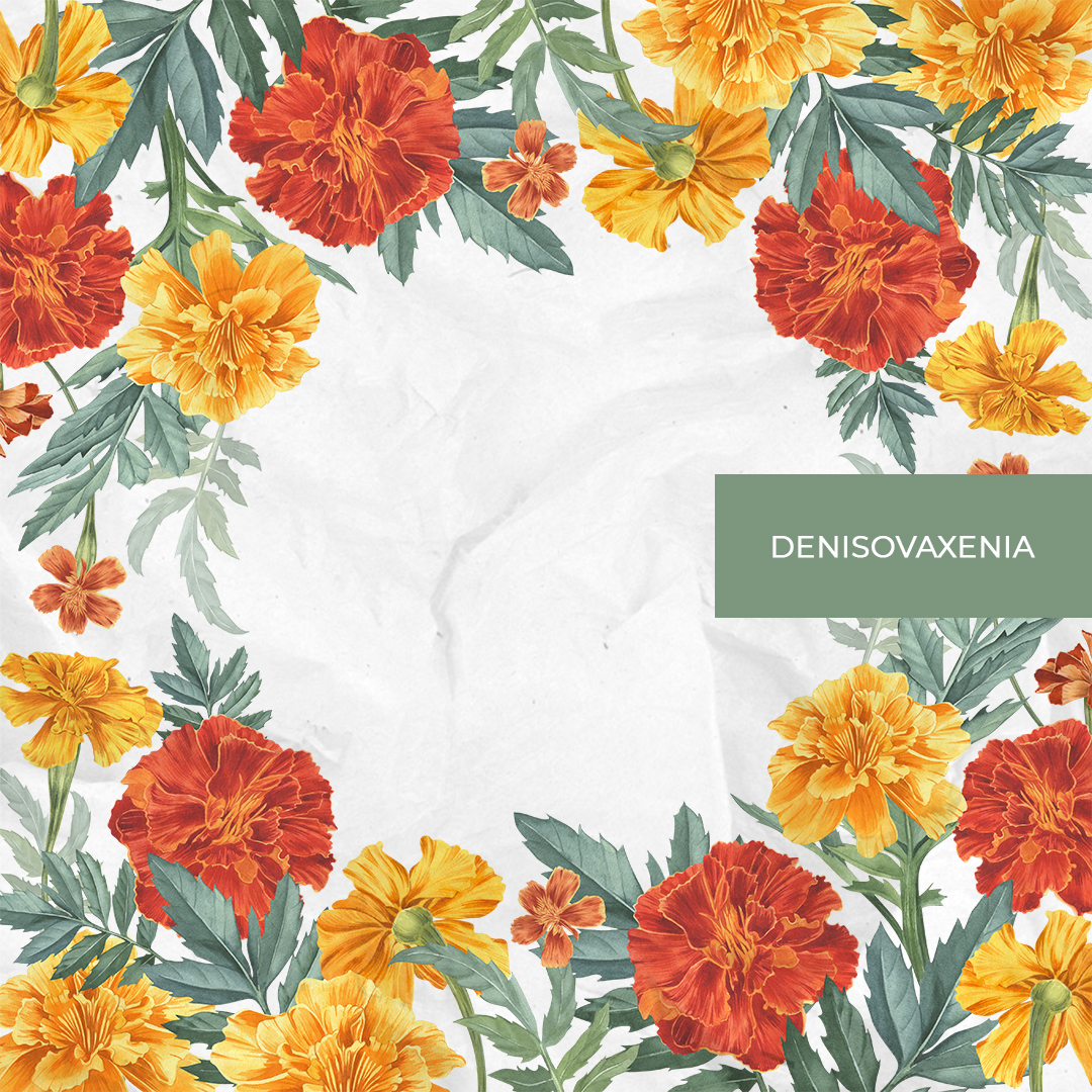 Бархатцы, рамка из красных и желтых бутонов. Сохрани дату. Акварель.