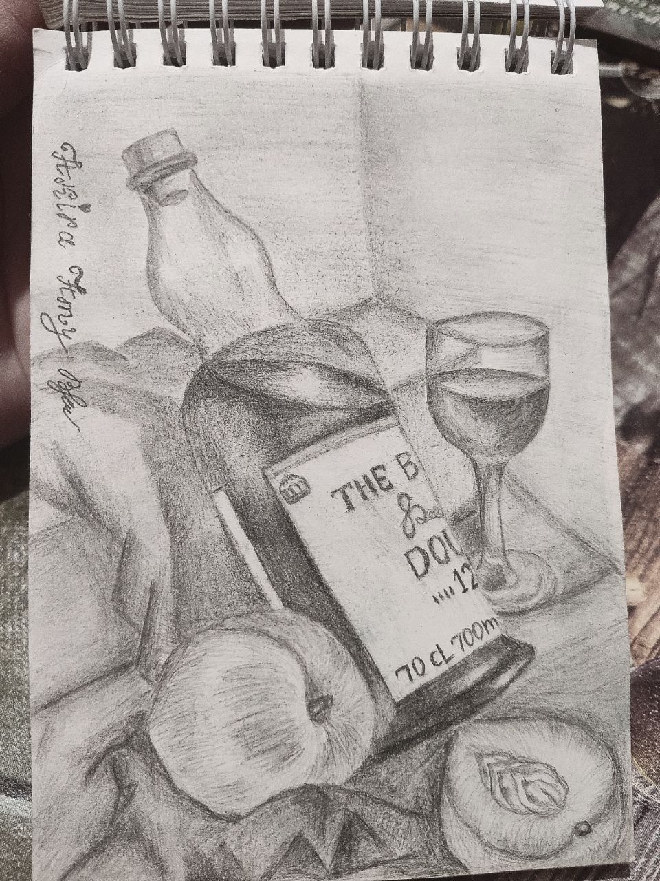 Still life with pencil shading🍾🍑