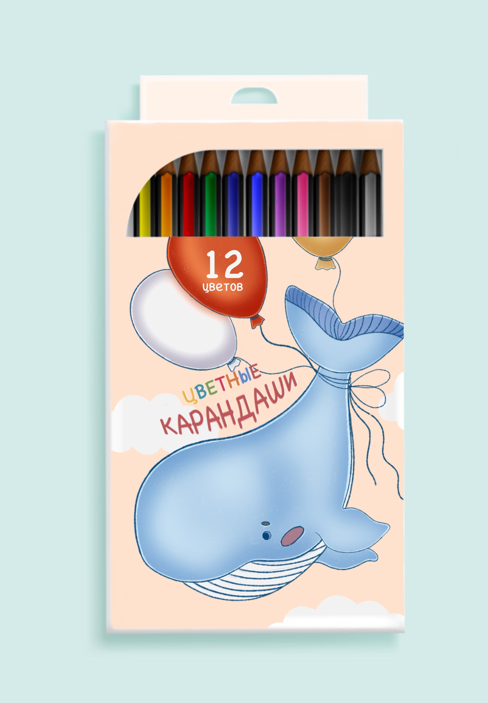 Иллюстрация для коробки с карандашами «Кит и шарики»