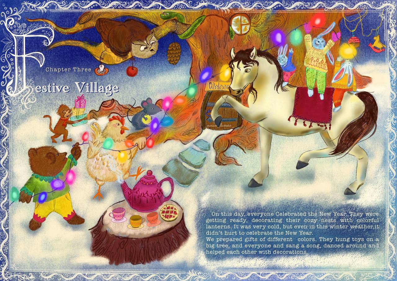 Детская книжная иллюстрация. Праздничная Деревня.