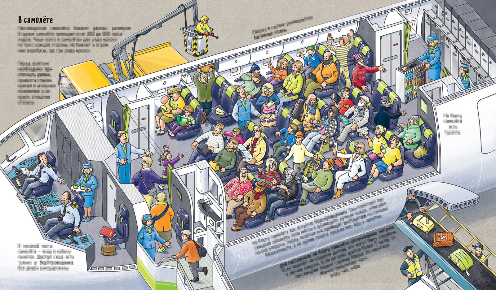 Разворот книжки «Как устроен аэропорт» для издательства Маламалама.
