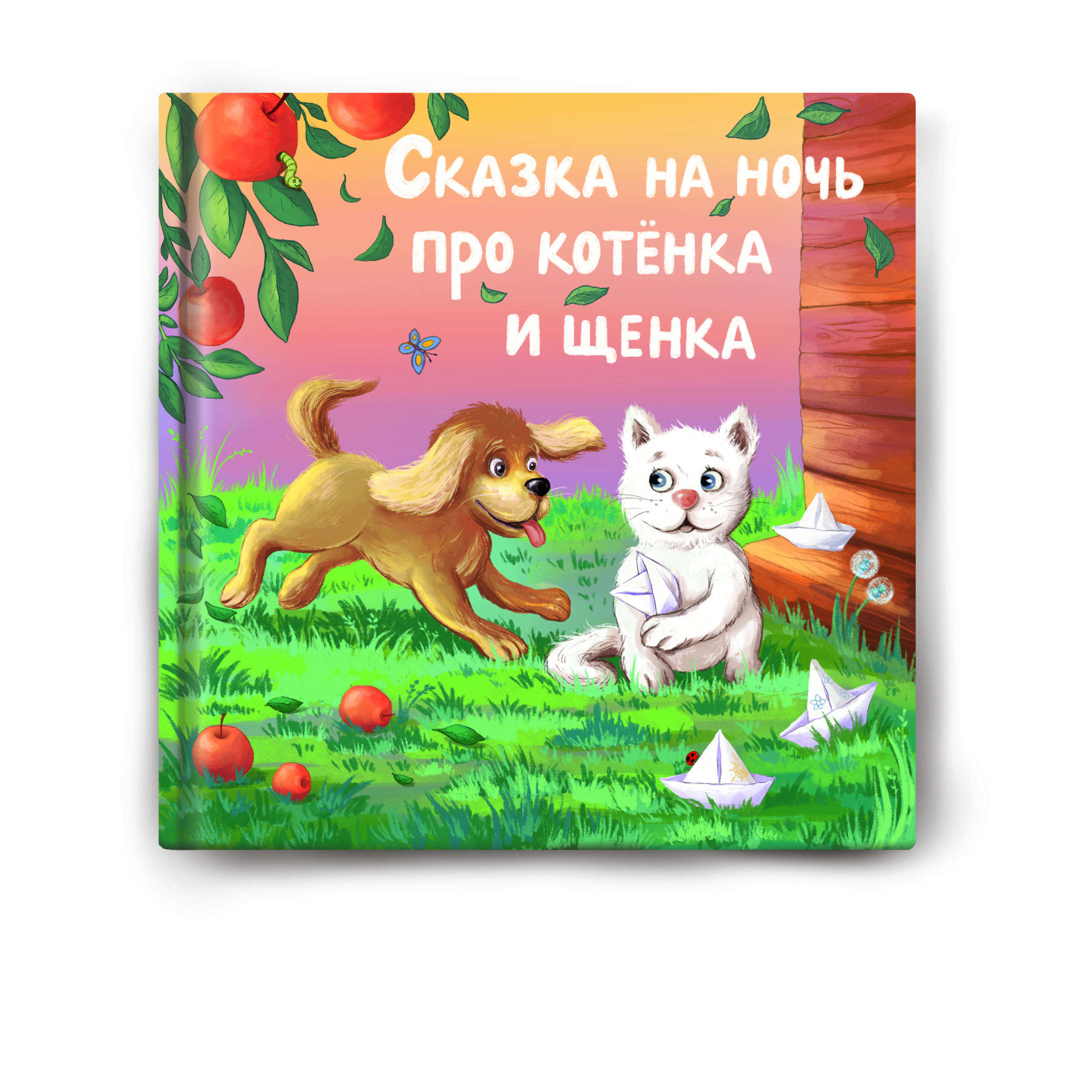 Иллюстрация к обложке детской книги "Сказка на ночь про котёнка и щенка"