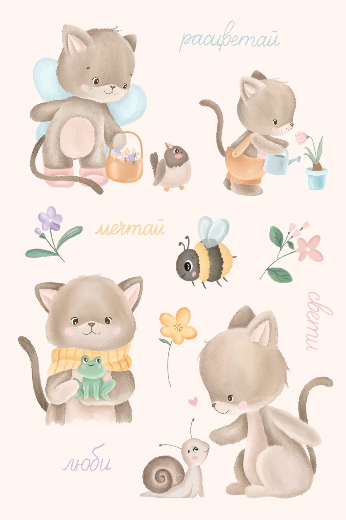 Стикеры с весенним котиком