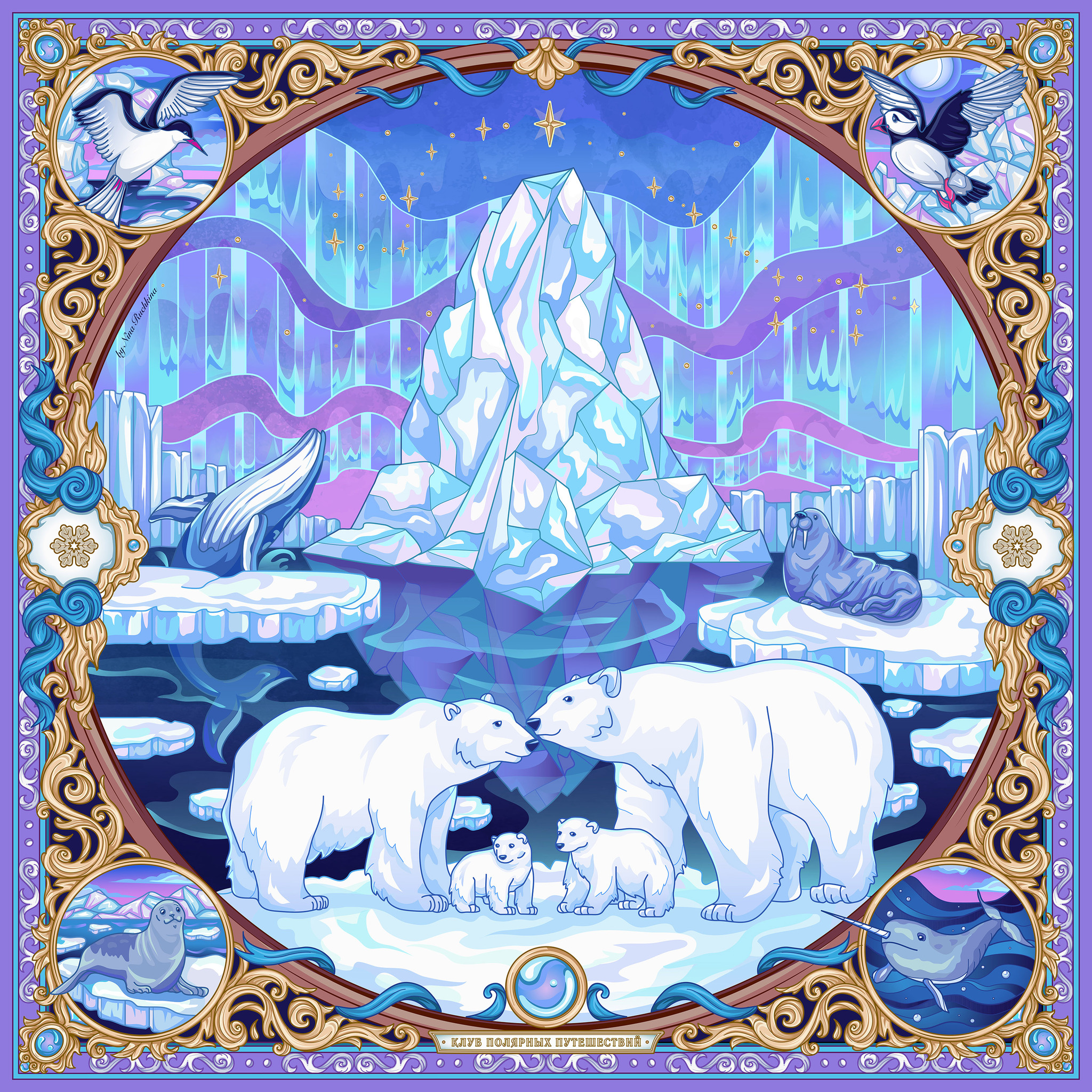 Платком «Арктика», созданный для бренда Нина Ручкина в арт-партнерстве с «Клубом полярных путешествий».