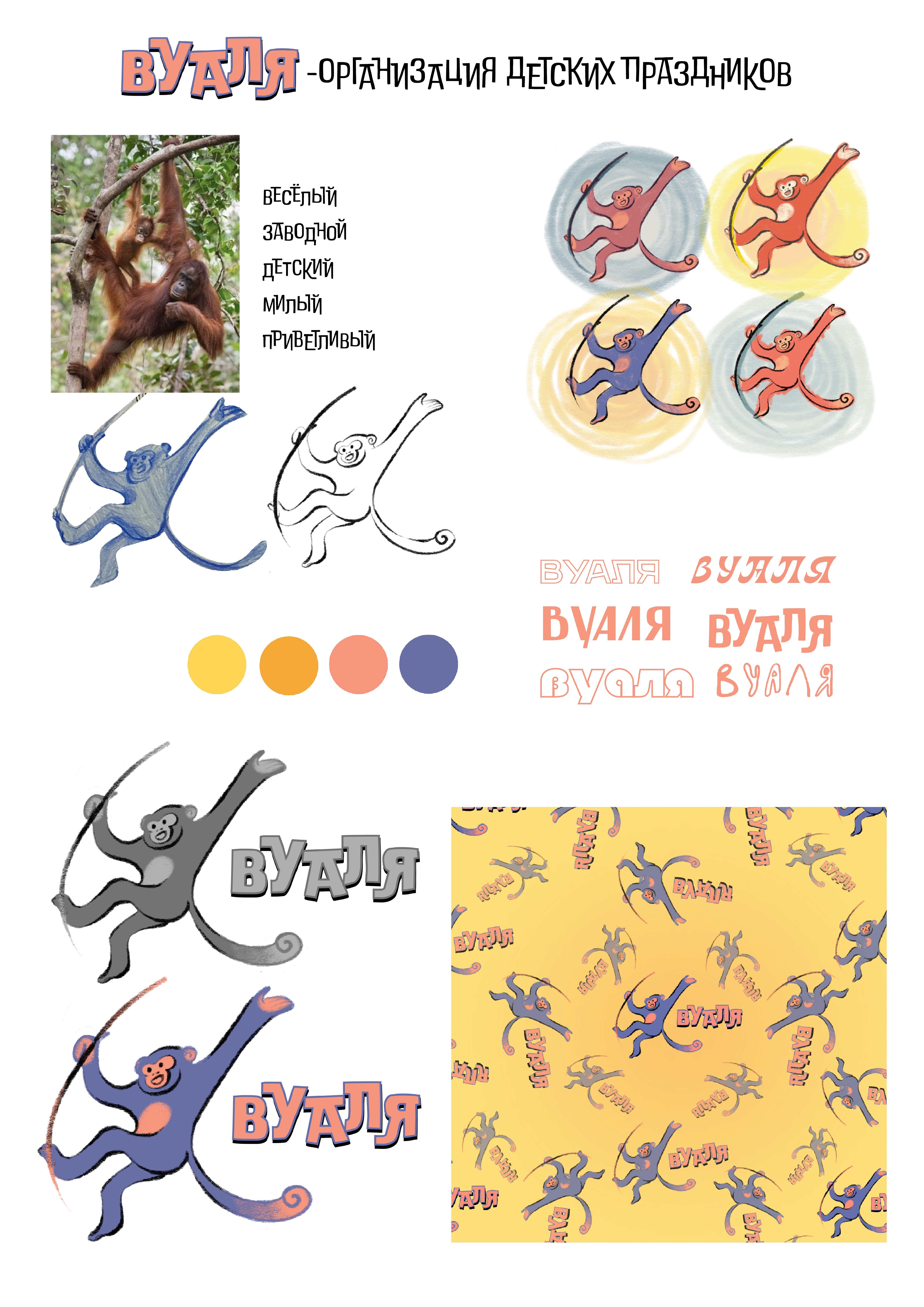 Разработка концепта логотипа для организации,занимающаяся детскими праздниками (с использованием выбранного животного-обезьяна)