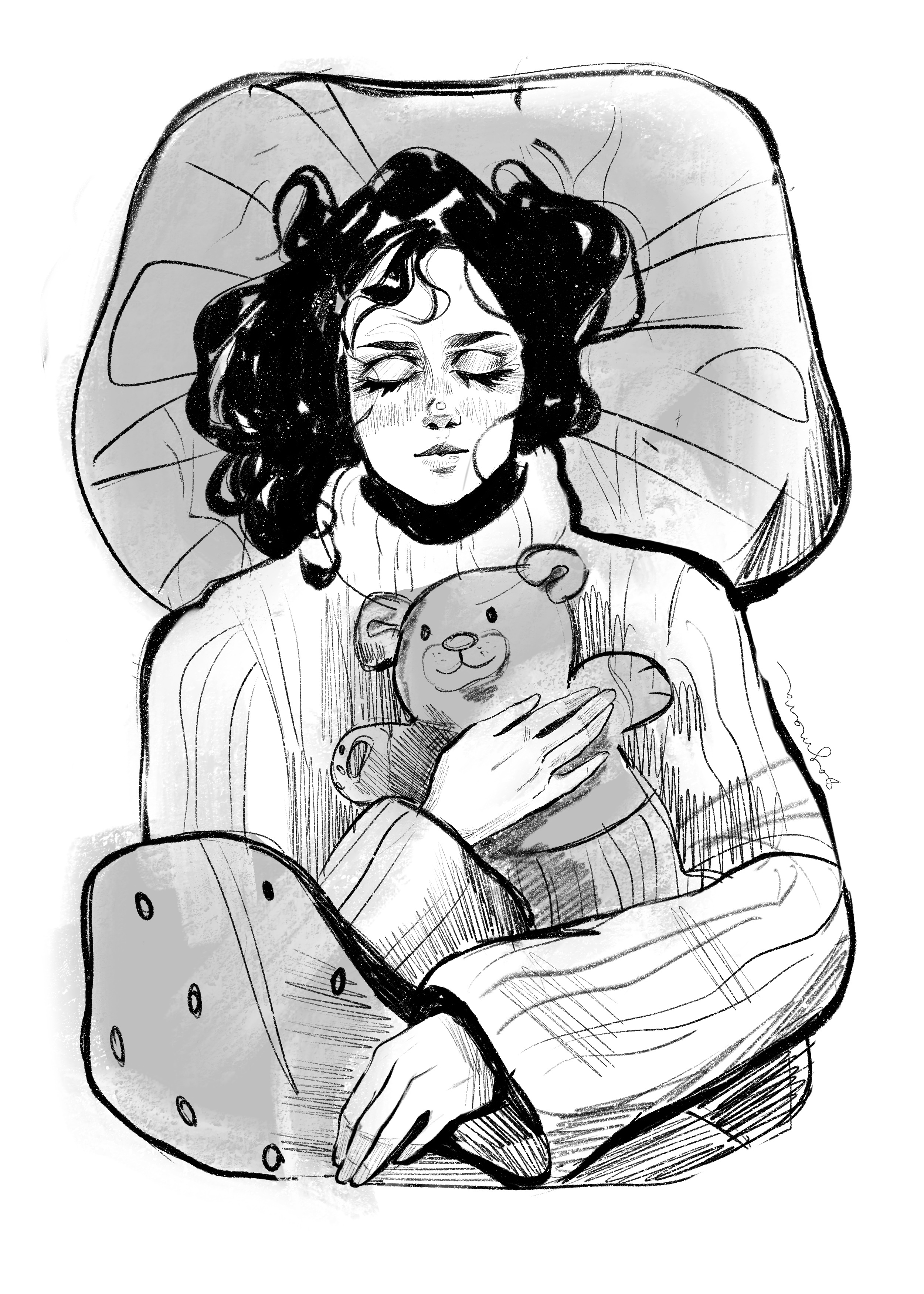 иллюстрация, которую я нарисовала во время участия в Inktober. Тема "сон".