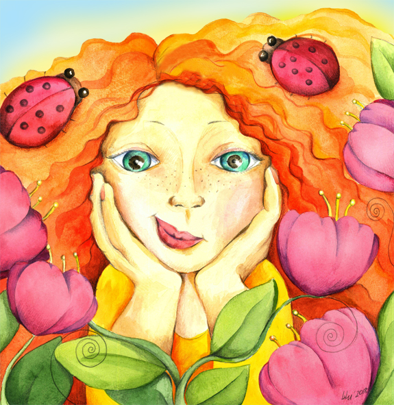 Девочка в цветах акварелью