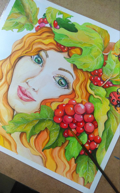 Олицетворение осени - девушка Анна с виноградными гроздьями